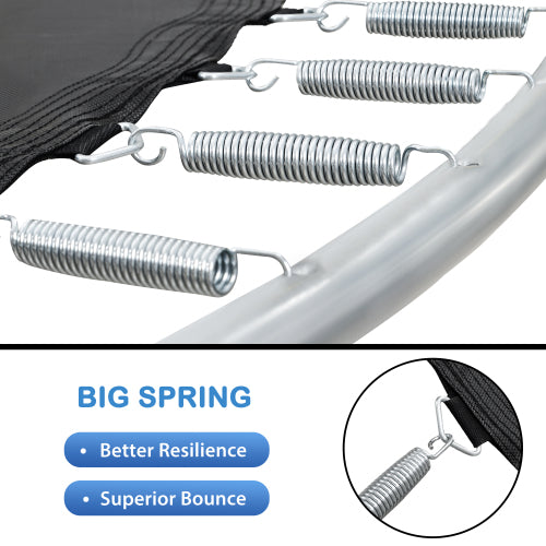 | 【Safety First】When it comes to children, parents always pay their most attention to confirm the safety issues. This trampoline consists of 72 sturdy and flexible springs, combined with a high-elastic, tough jumping mat, which can ensure the stability of each bounce. We use a redundant spring configuration to ensure a soft impact and avoid excessive tension on the feet and joints, so as not to make the child feel uncomfortable. |