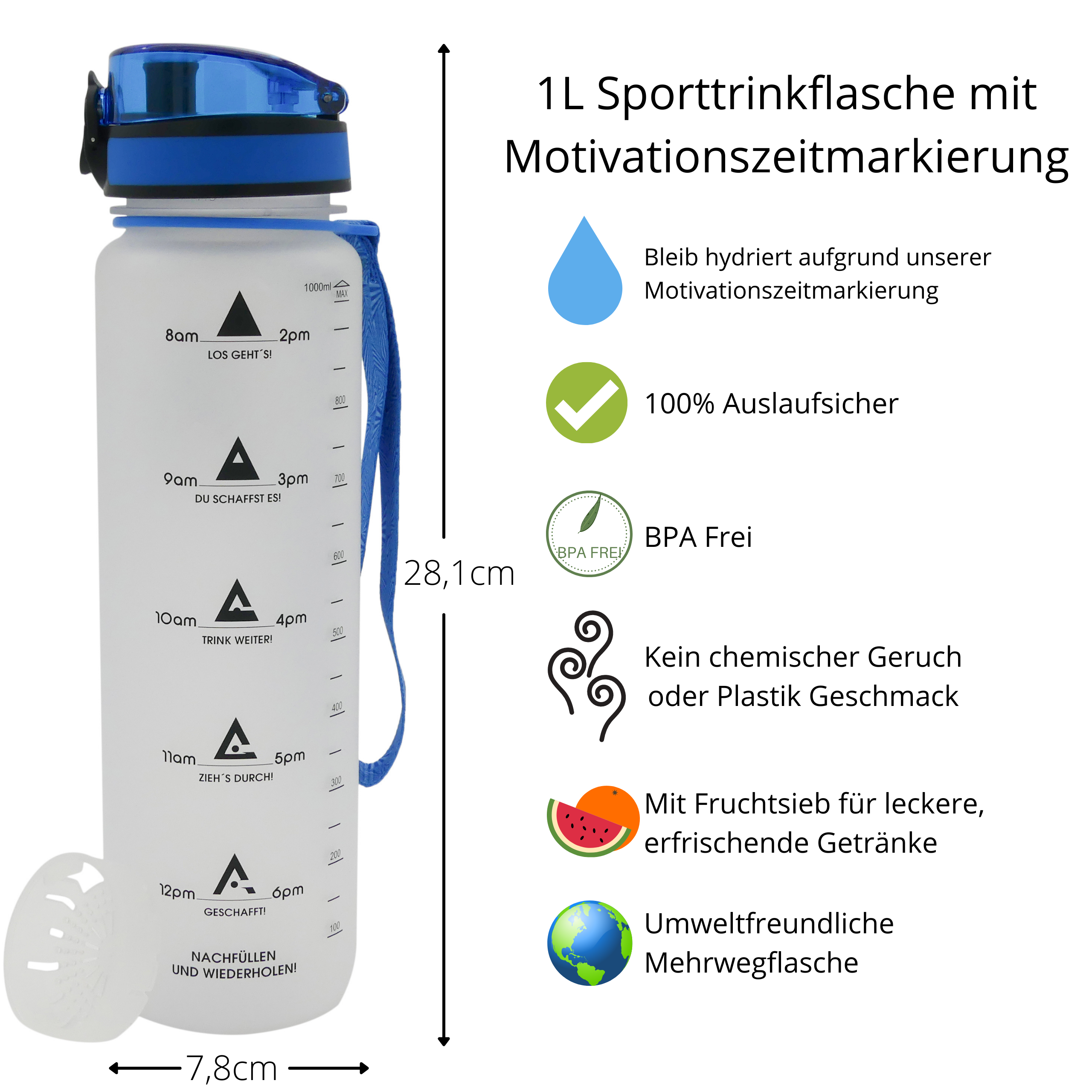 Wasserflasche mit Motivationszeitmarkierung - Nie mehr auf´s Trinken