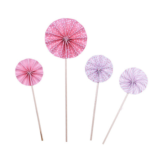 4Pcs/lot Mini Paper Fan Cake Topper Cupcake