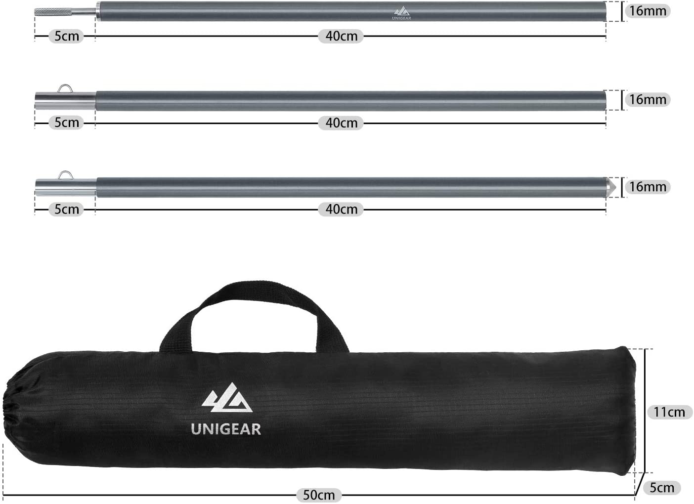 | Material | Pole: 7075-T6 Aviation Aluminum +201 Stainless Steel; Portable Storage Bag: 450D Polyester with Waterproof PU Coating |