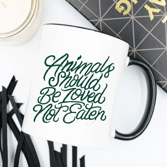 •"Animals Should Be Loved, Not Eaten - Funny Coffee Mug" . You never have to worry when you do business with ; we stand by our mugs 100%.