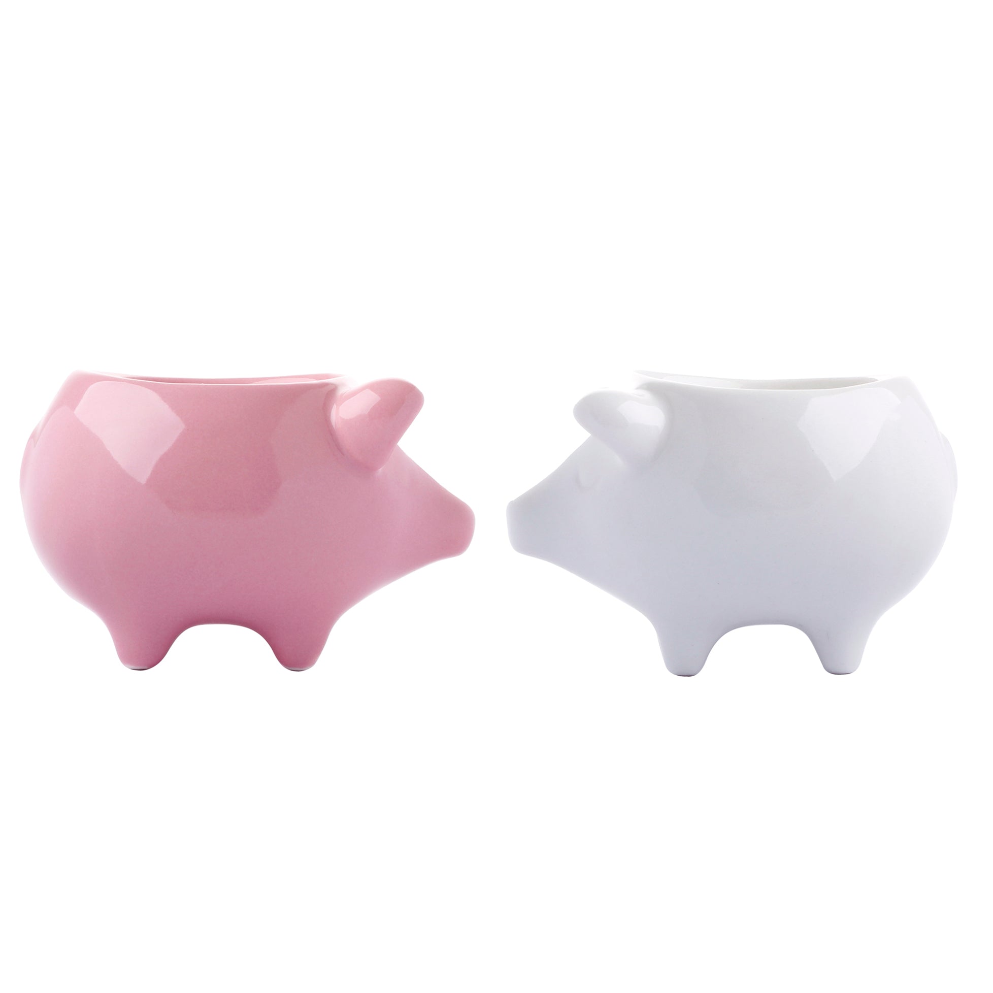 Little pigs in different colours, sold in sets of two eggcups: pink/white (also available in blue/green)