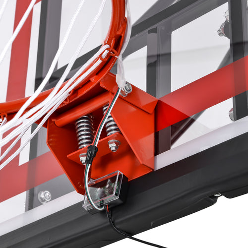 【Durable & Sturdy】The basketball hoop & goal has organic glass edge protection design backboard(Backboard Dimensions:51.8"x32.3"Thickness:3cm) and shock-absorbing bumper. What's more, the basketball hoop has multiple screws to fix the backboard and rust-proof main shaft, to ensure the basketball goal more durable and sturdy when using indoor or outdoor