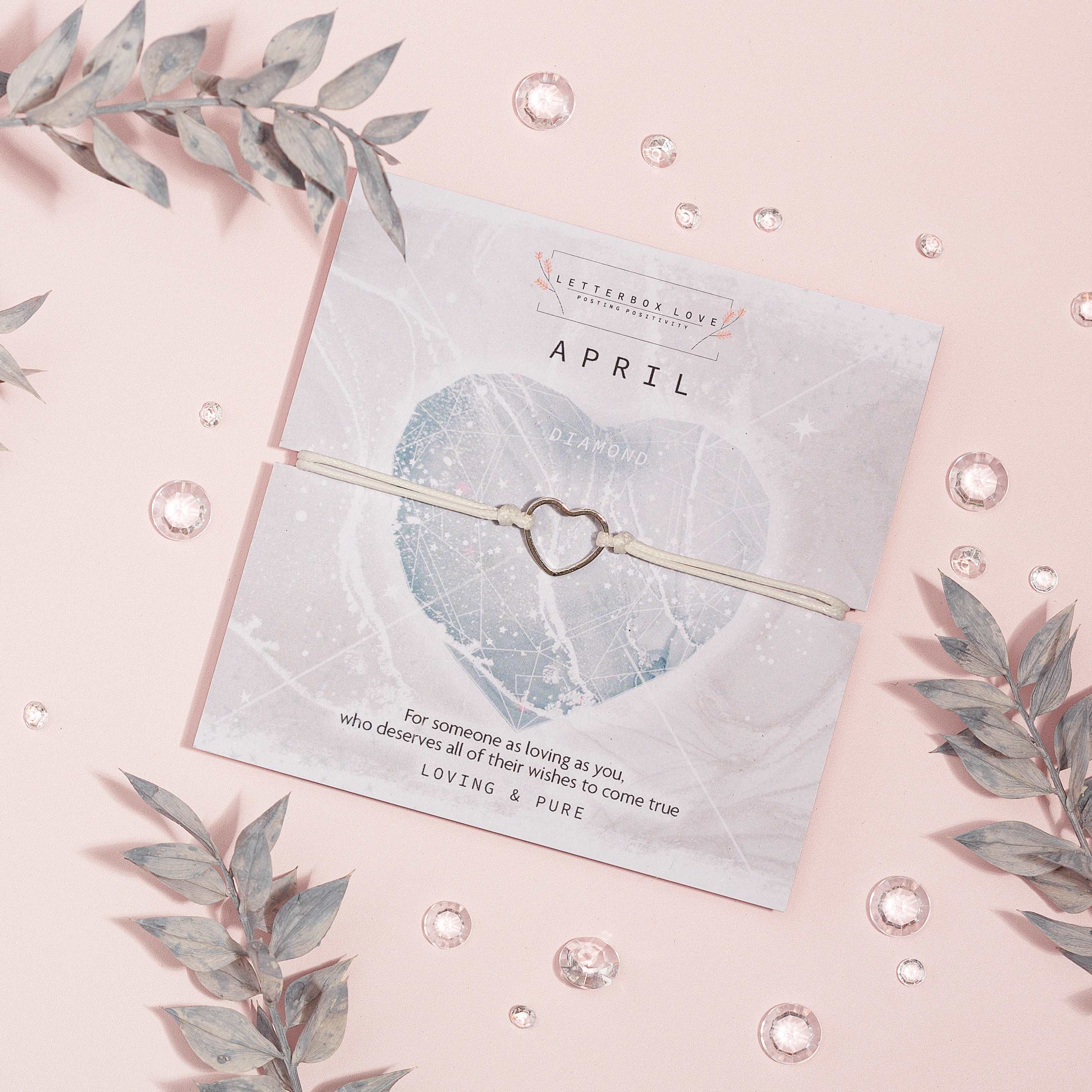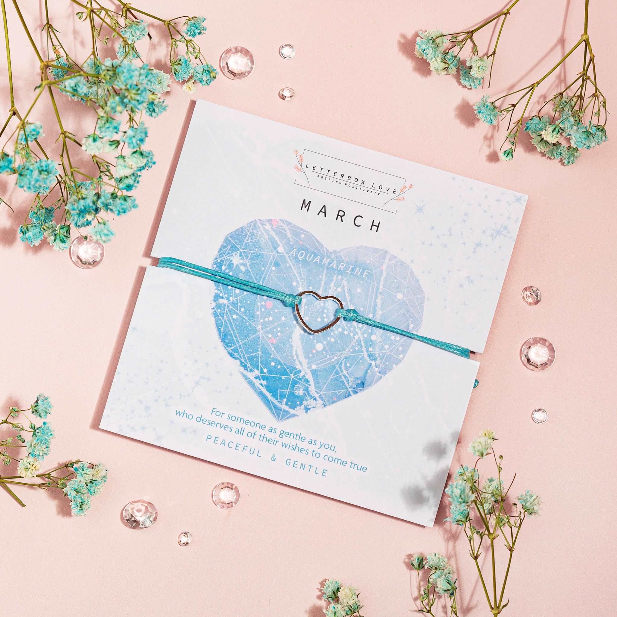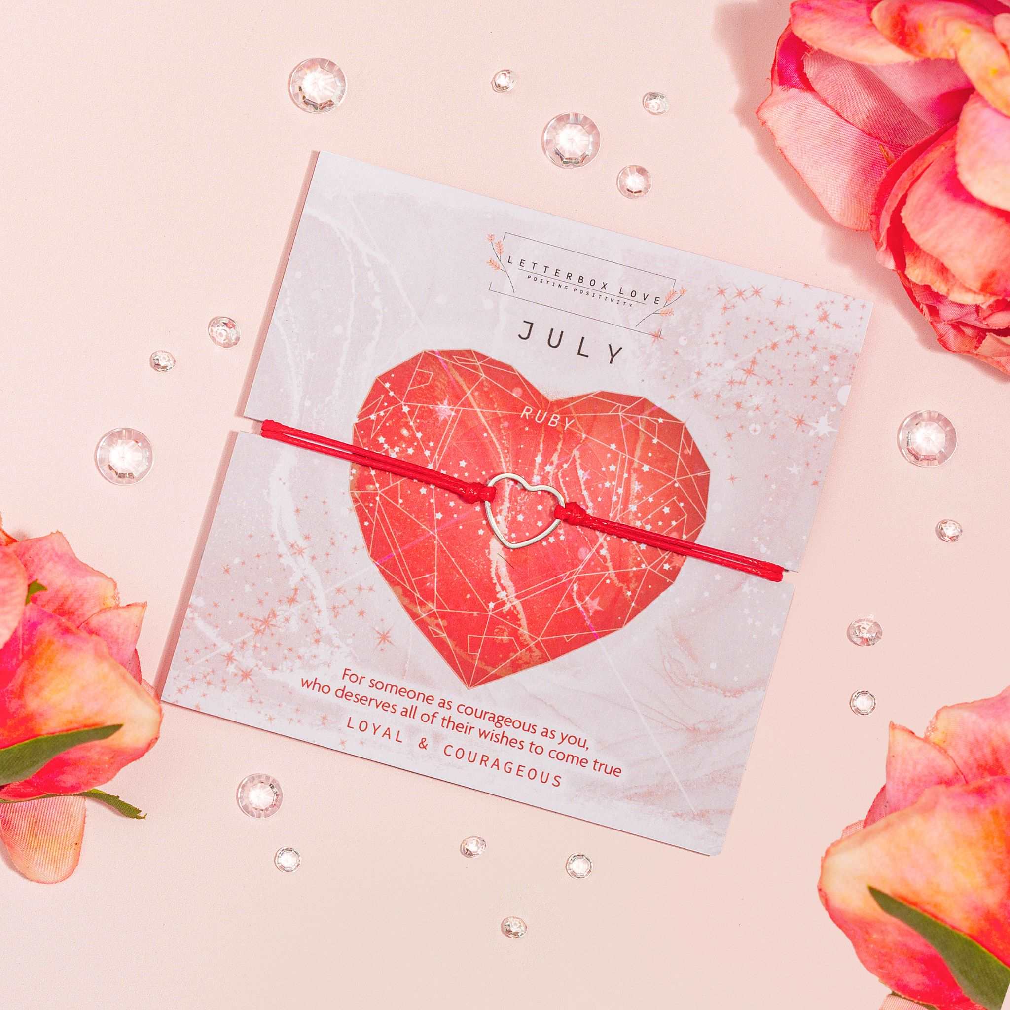 A vibrant collection of birthstone wish bracelets, each month showcasing a dazzling birth stone print and a dainty hollow heart adjustable string bracelet. For a cute and affordable gift that is perfect for stocking stuffers or any occasion.