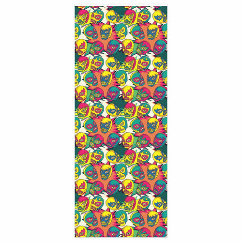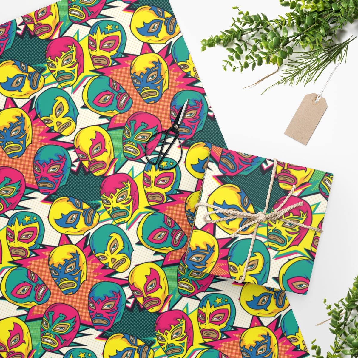 Our Bright luchador wrapping paper features edge-to-edge printing on a premium gloss paper (90 GSM) for a smooth and clean look. 90 gsm fine art paper Available as one sheet in two sizes: 24" × 36" or 24" × 60" Paper comes rolled-up. Our wrapping paper can also be used for book covers, scrap booking, or even drawer liners.