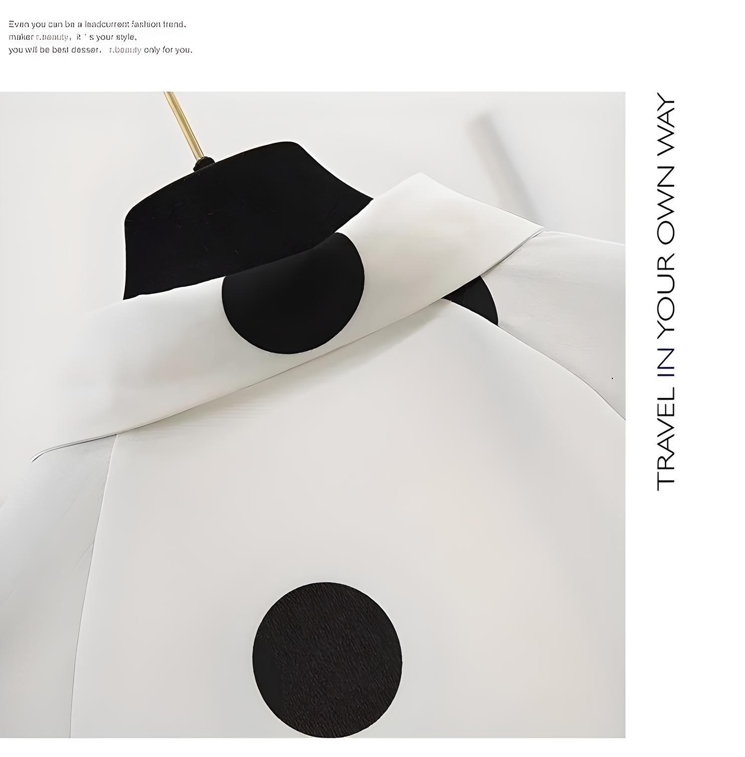 This sophisticated two-piece set combines a semi-sheer chiffon blouse with high-waisted tailored trousers, offering an elegant silhouette with breathable comfort. Ideal for transitional seasons, this ensemble balances modest coverage with refined femininity.