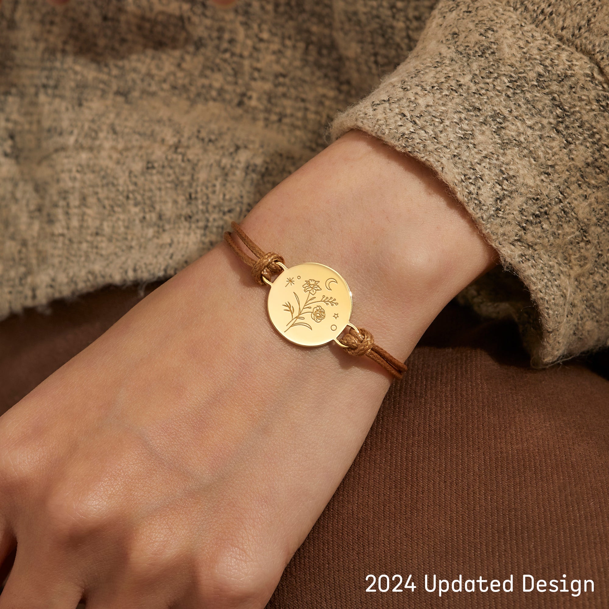 Personalize this leather bracelet with the birth month flower on the front and your own short meaningful message on the back. It's the perfect gift for for mom on Mother's Day, Chrsitmas or any special occasions.