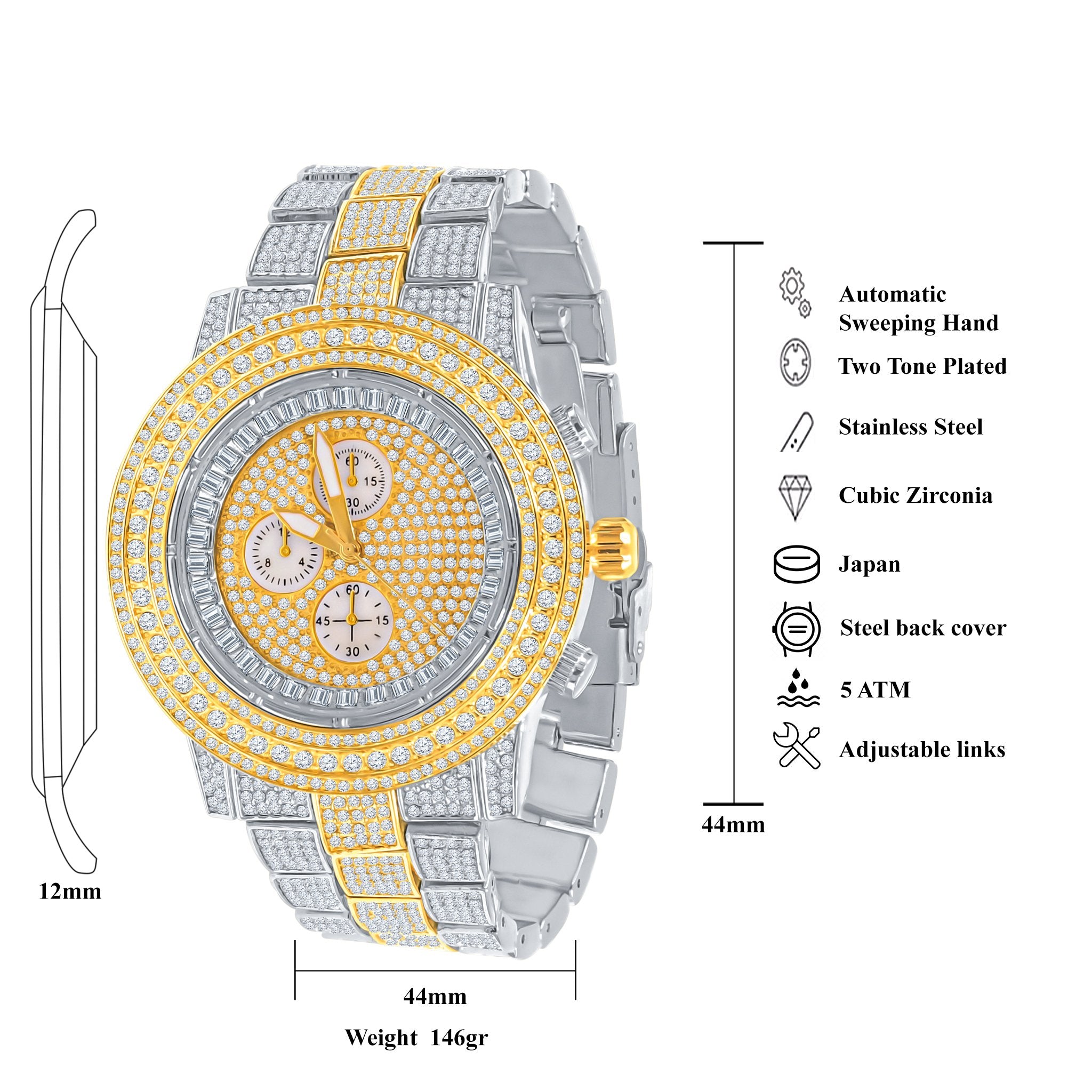 COMELY a watch is a style assertion designed to make you distinctively elegant among the crowd and this timepiece is crafted to deliver you just that. Aberrant layout of intricate gleaming stones in both the bezel and the frame, in pair with coruscant bedazzling watch band, this ultra modern ticker speaks of no less of luxuriance & embellishment.