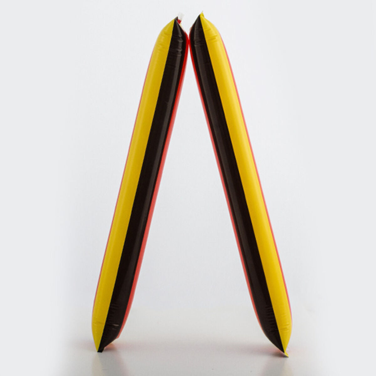 Cheer on your team and make noise with the German Flag clappers! It features 2 clappers and a plastic stick to inflate and deflate them. Made of plastic. Approx. dimensions: 8 x 55 cm.