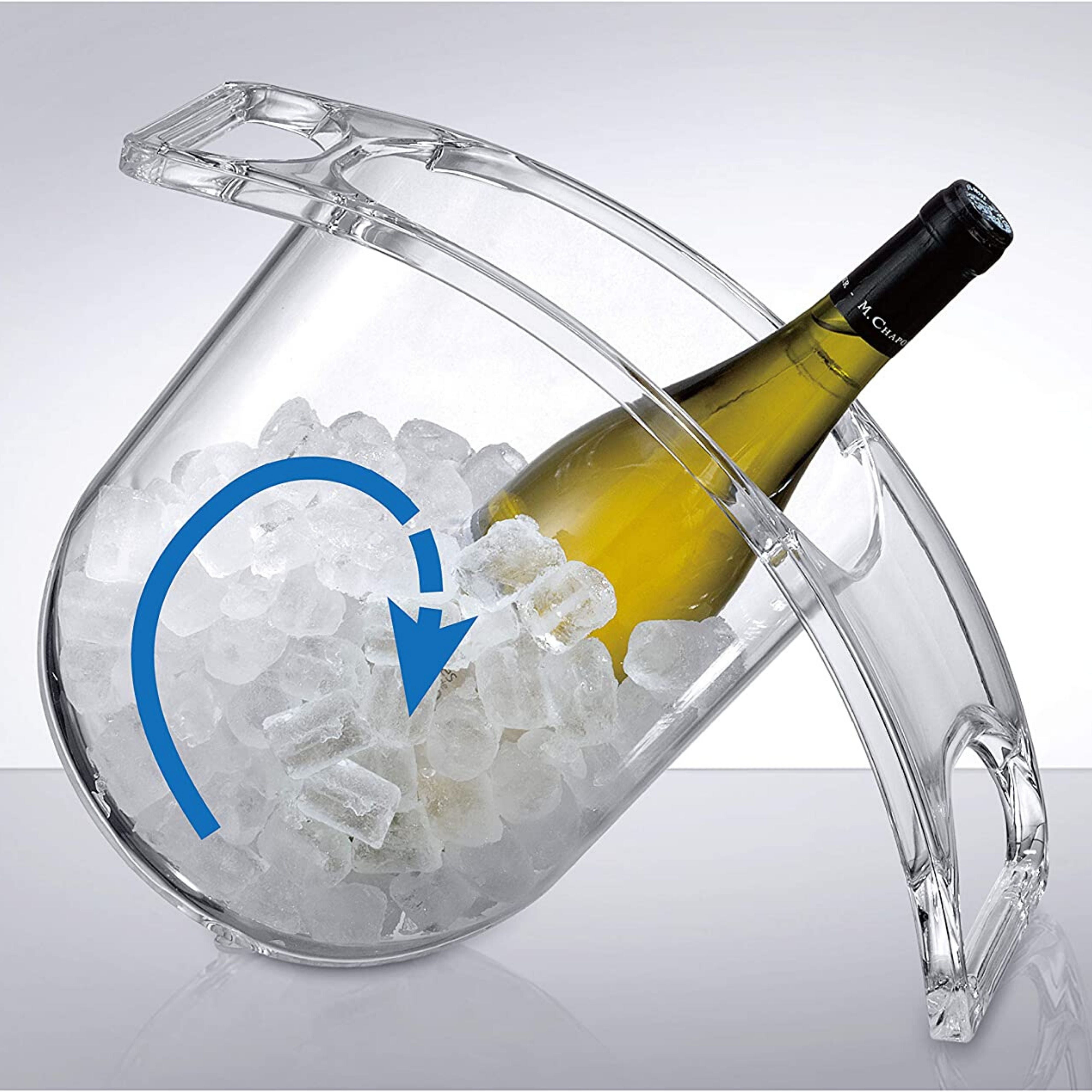 Created for functionality, the Coolin Curve wine chiller is the first of its kind. This acrylic wine bucket has a tilted curved bottom, causing the ice to easily rotate onto your favorite champagne for a perfectly chilled celebration every time.