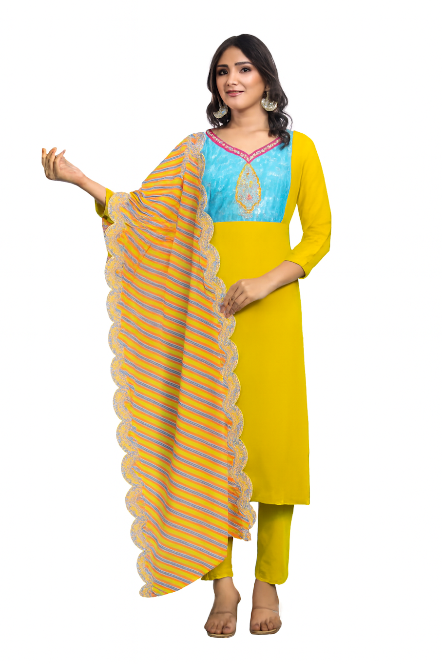 Festive Wear Straight Kurta and Pant Set with Dupatta-Pista