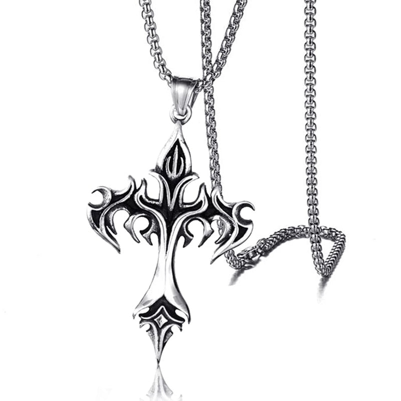 Flaming Gothic Style Cross Necklace Color: Silver Material: Stainless Steel Length: 23.6" Weight: 20g Read more