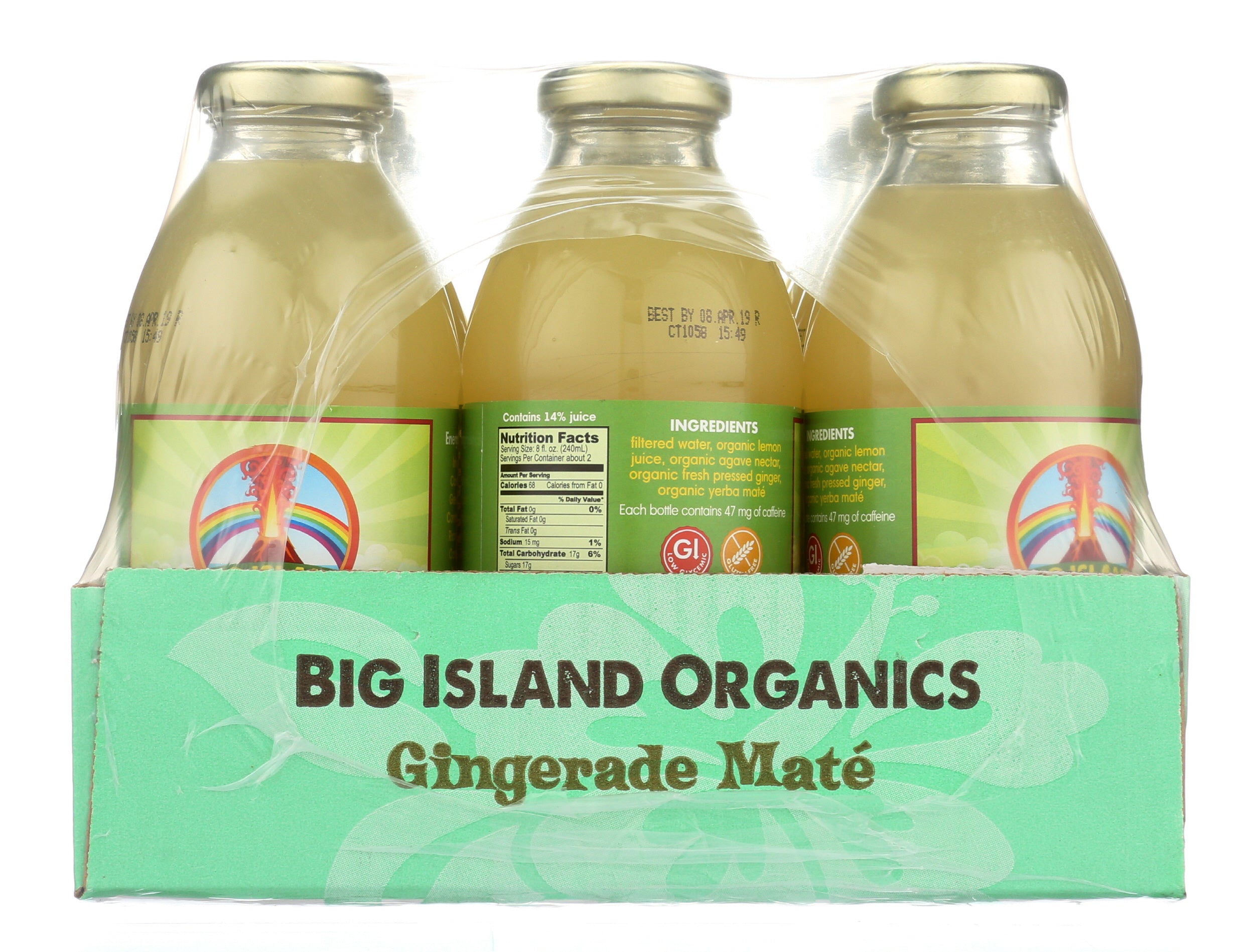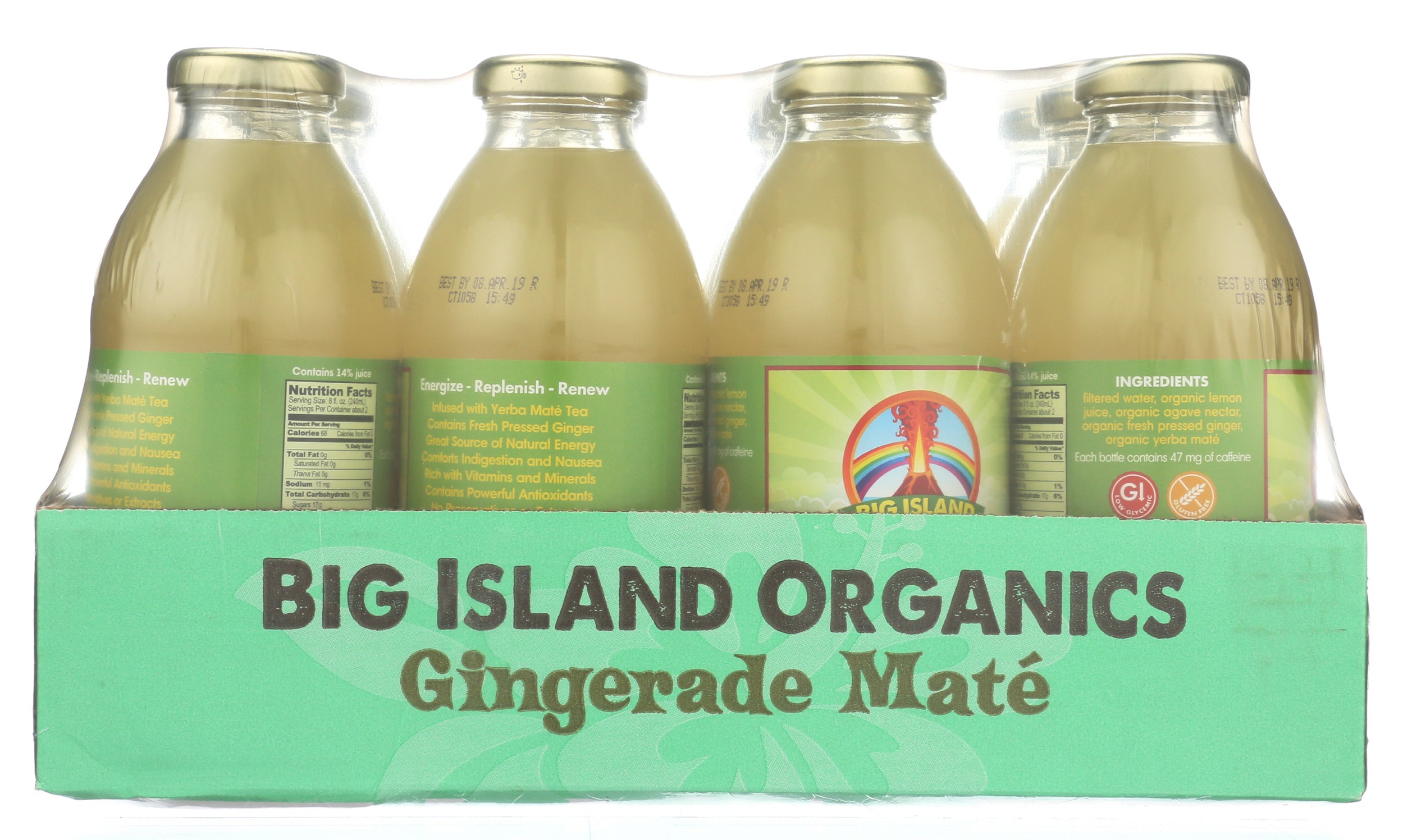 Ingredients: filtered water, organic lemon juice, organic agave nectar, organic fresh-pressed yellow ginger juice, organic cold-infused ECOTEAS Yerba Maté.
