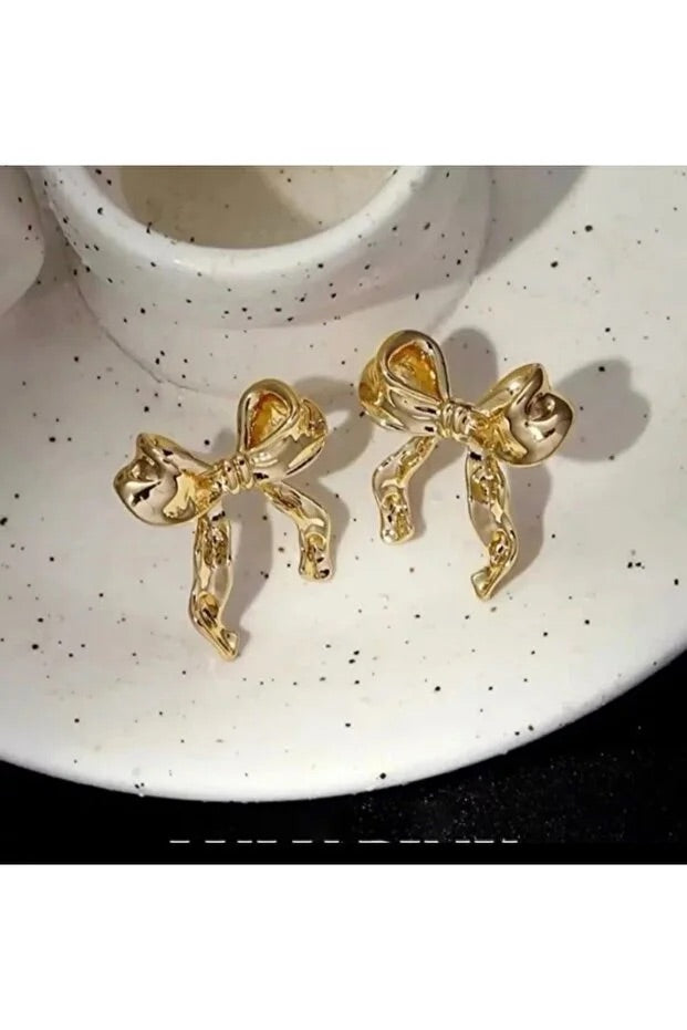 Gold Small Bow Drop Earrings for Women Elegant Delicate Jewelry