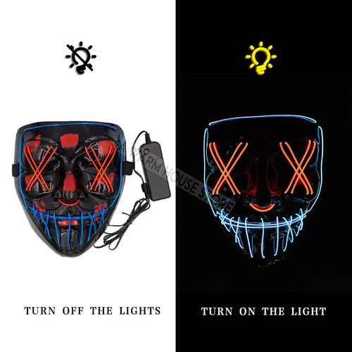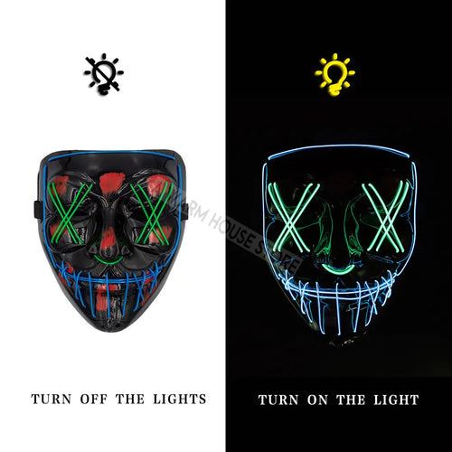 Illuminate your Halloween night with our stunning LED mask. Designed for maximum impact, this mask features vibrant LED lights that glow in the dark, creating a mesmerizing effect. Stand out from the crowd and turn heads as you showcase your unique style and flair. Perfect for parties, festivals, or spooky night outs, this mask is your go-to accessory for a memorable Halloween experience.