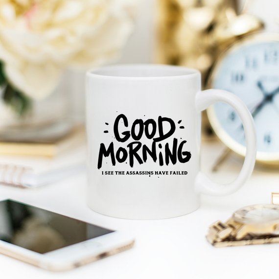 So what are you waiting for? Click the "Good Morning, I See the Assassins Have Failed - Funny Coffee Mug" while supplies last.
