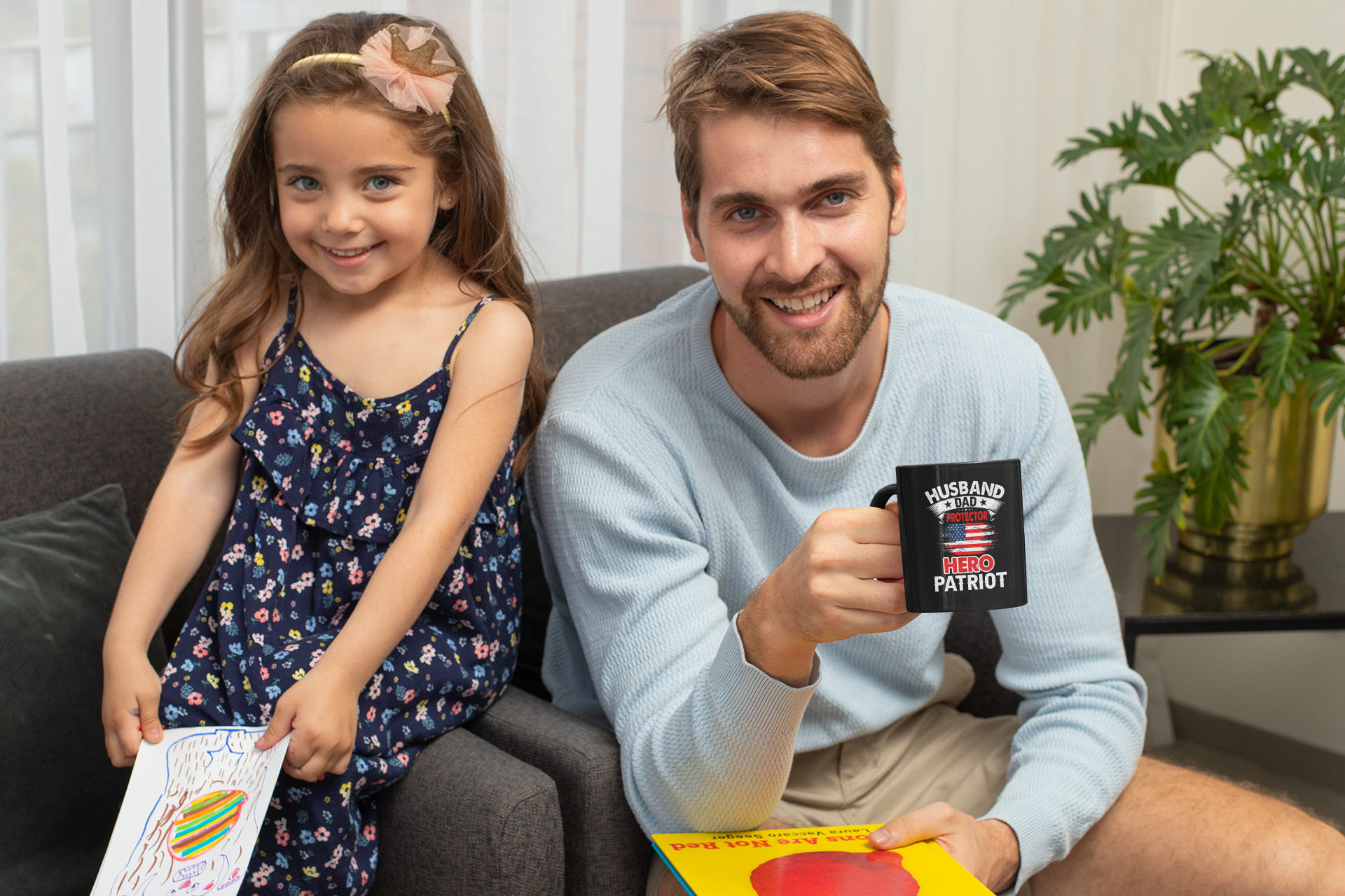 Husband, Dad, Protector, Hero, Patriot Mug. Perfect for coffee, tea and hot chocolate, this classic shape white, durable ceramic mug.... Read more