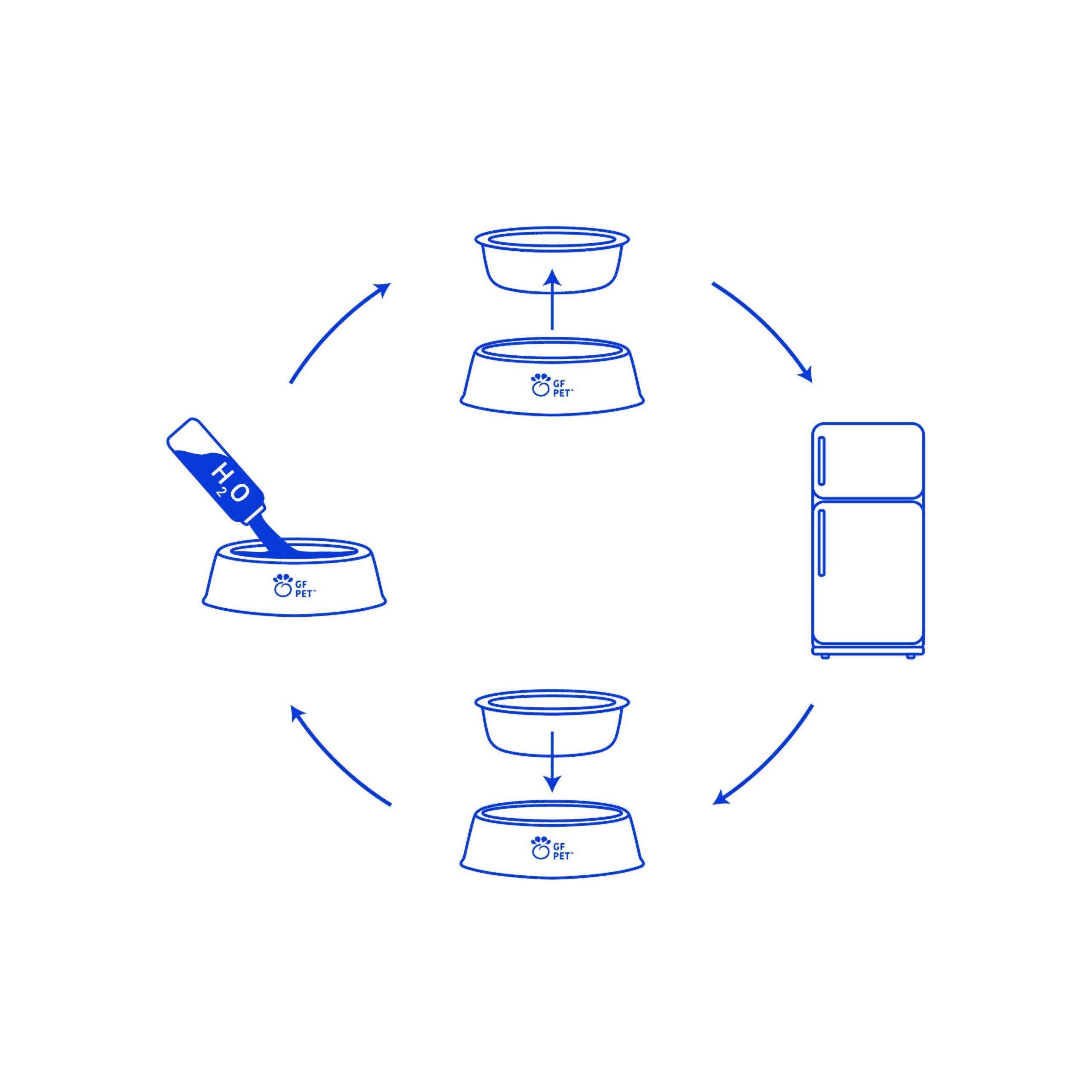 The GF Pet ICE-BOWL is designed to keep your pets’ water cool for hours.