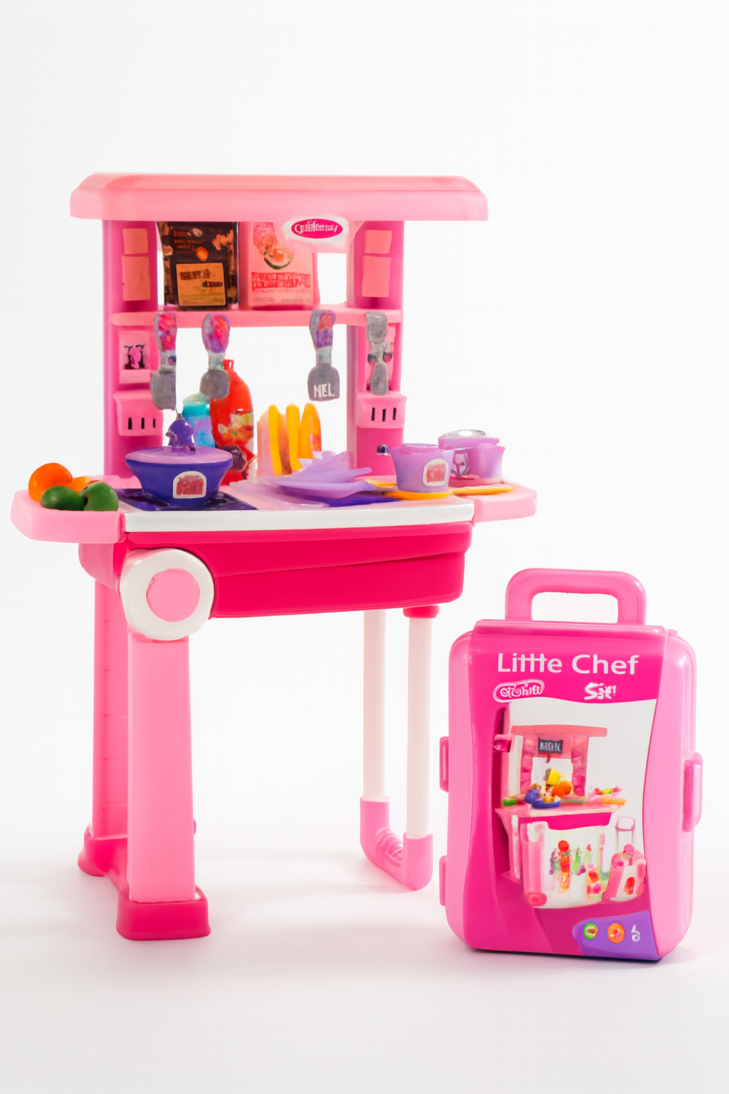 Spark your child’s imagination with the Little Chef Pink Toy Kitchen Set. This portable playset includes a realistic stove, sink, shelves, and a full set of kitchen accessories—pots, pans, utensils, plates, and toy food. Designed in vibrant pink with a suitcase-style carrying case, it’s perfect for travel and tidy storage. Ideal for kids aged 3+, this set encourages role play, creativity, and motor skill development.
