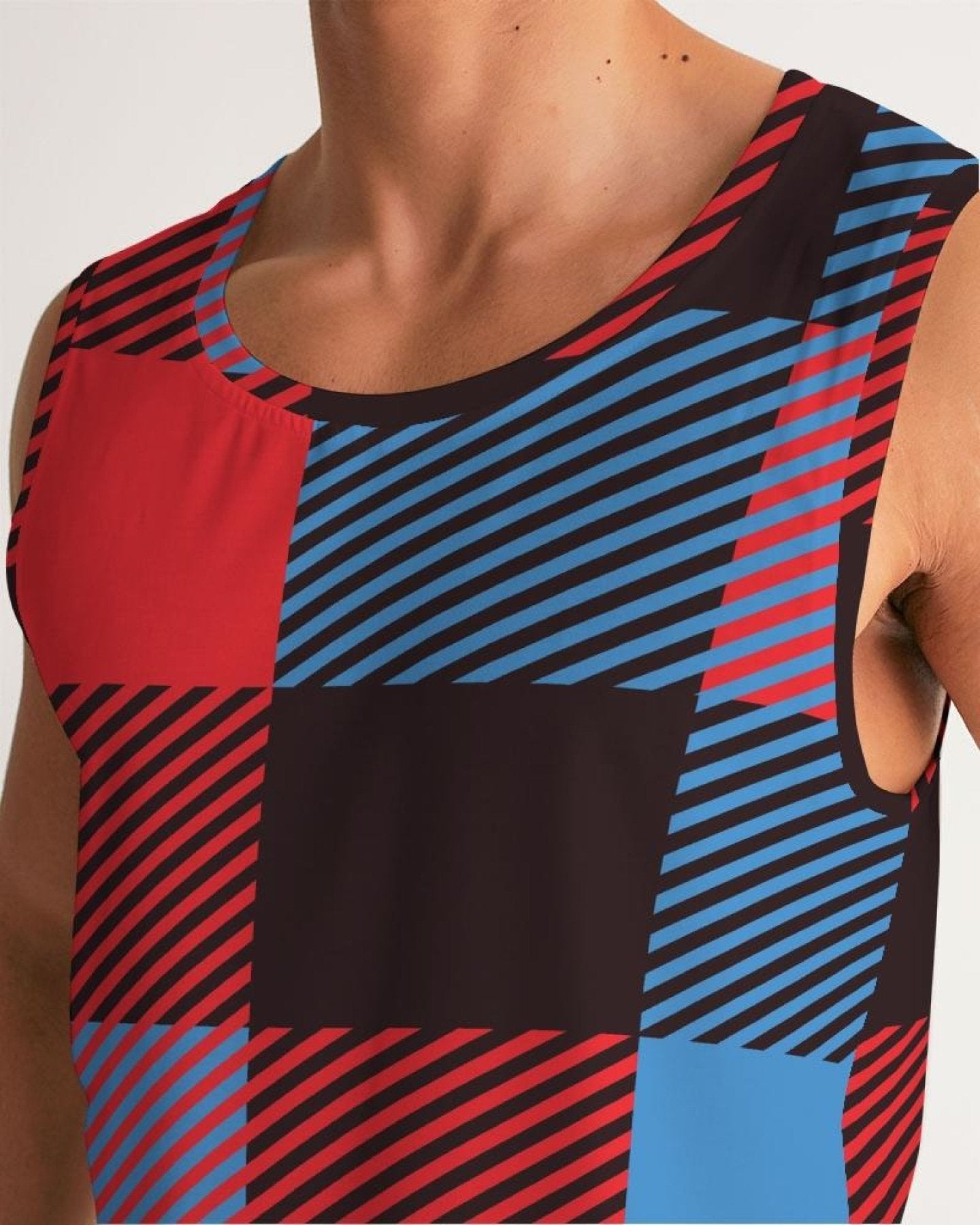 Mens Tank Top - Multicolor Flannel Pattern Sports Top