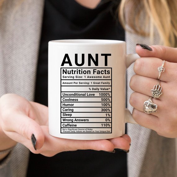 •"Aunt Nutritional Facts - Funny Coffee Mug" . You never have to worry when you do business with ; we stand by our mugs 100%.