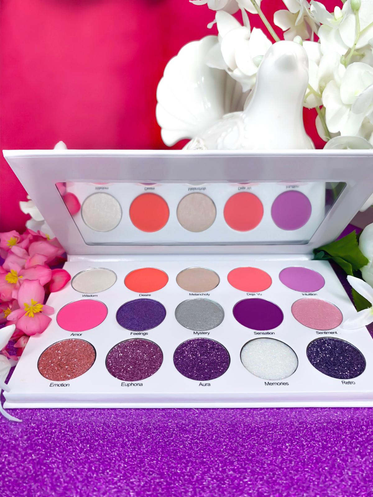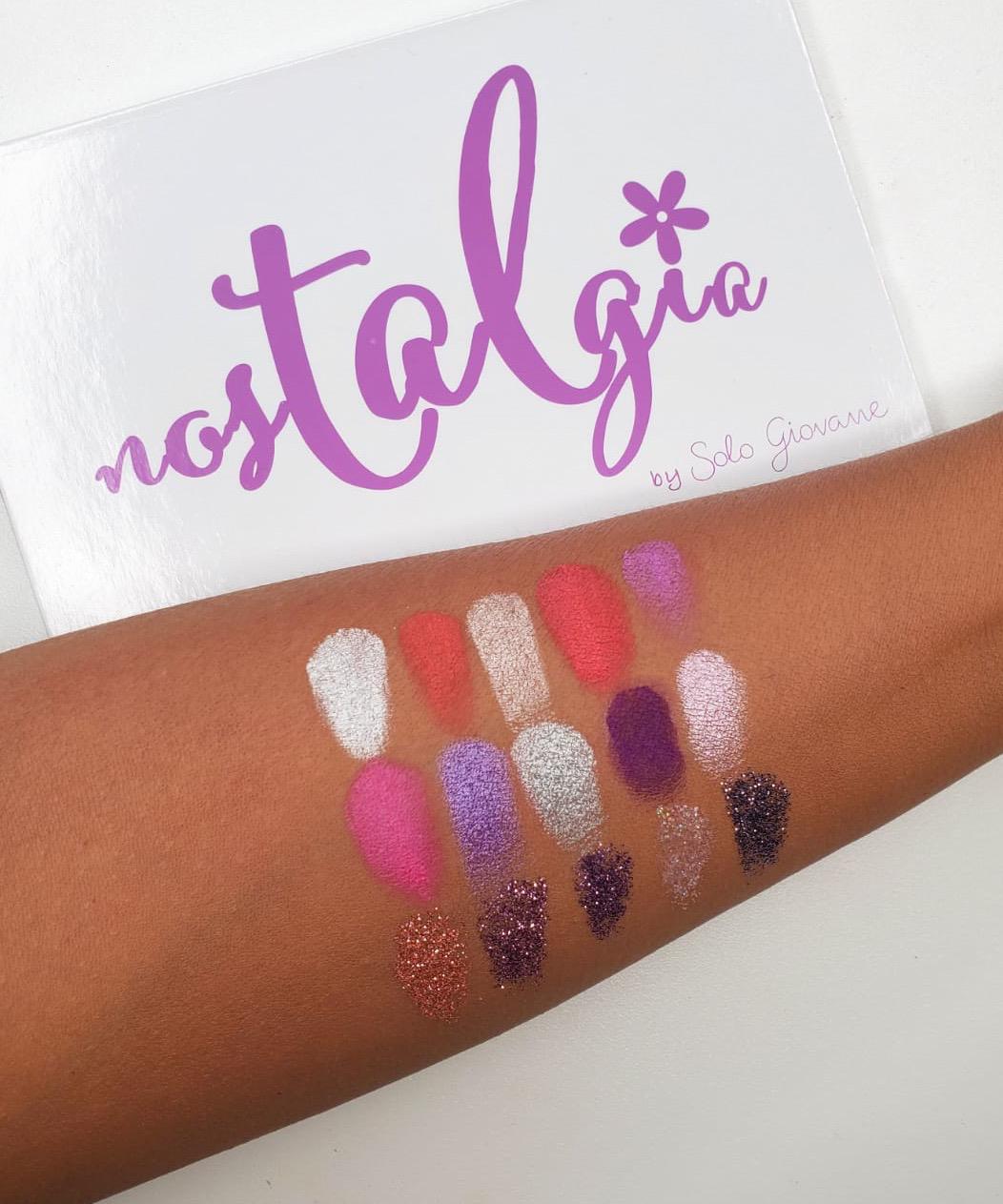 Nostalgia is a one of a kind palette, with pastels, bright pinks and purples, and dreamy glittery colors. create looks that fascinate.