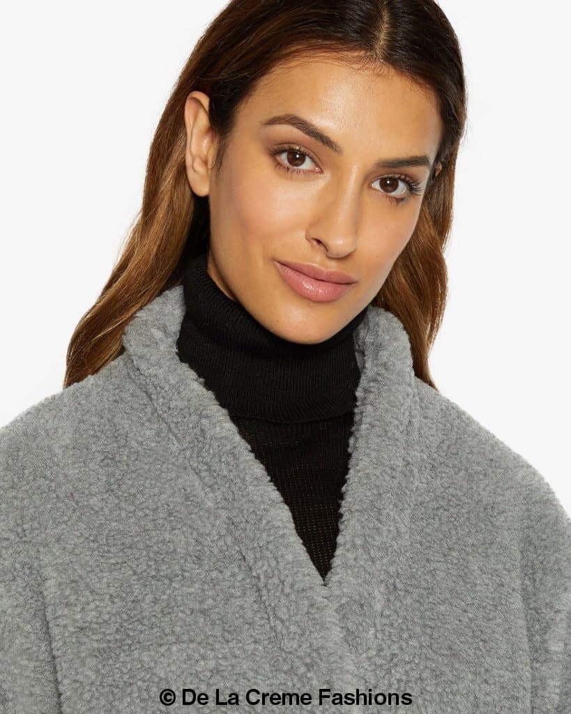 an oversized hip length coat with Borg teddy finish. Open front with belt to keep you extra warm and cosy! Features 2 side pockets and is Fully lined inside with 100% Polyester lining. Italian Fabric, English Manufacturing. The quality and craftsmanship of both blend together to deliver a premium product from De La Creme Fashions.