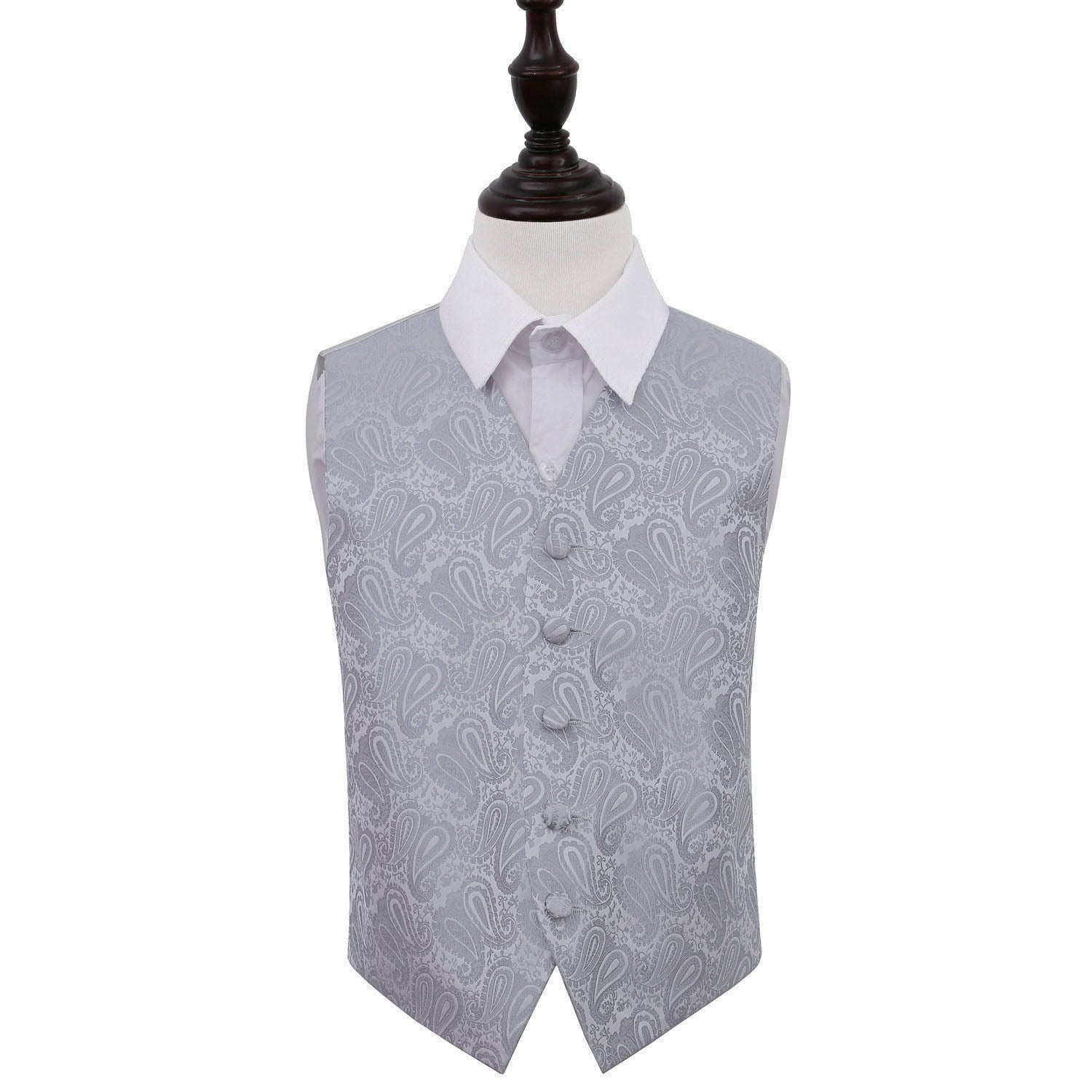 DescriptionPaisley Waistcoat - Boys - Silver, 34' Specifications Weight: 200gr Usage: Indoor & outdoor Pros and cons Sustainably producedIdeal for everyday useMay discolor in direct sunlight