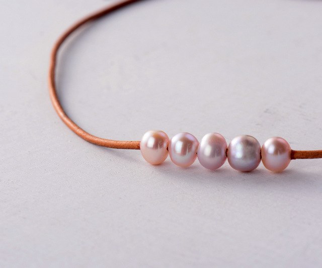Pearl Choker Freshwater Pearls Natural Leather