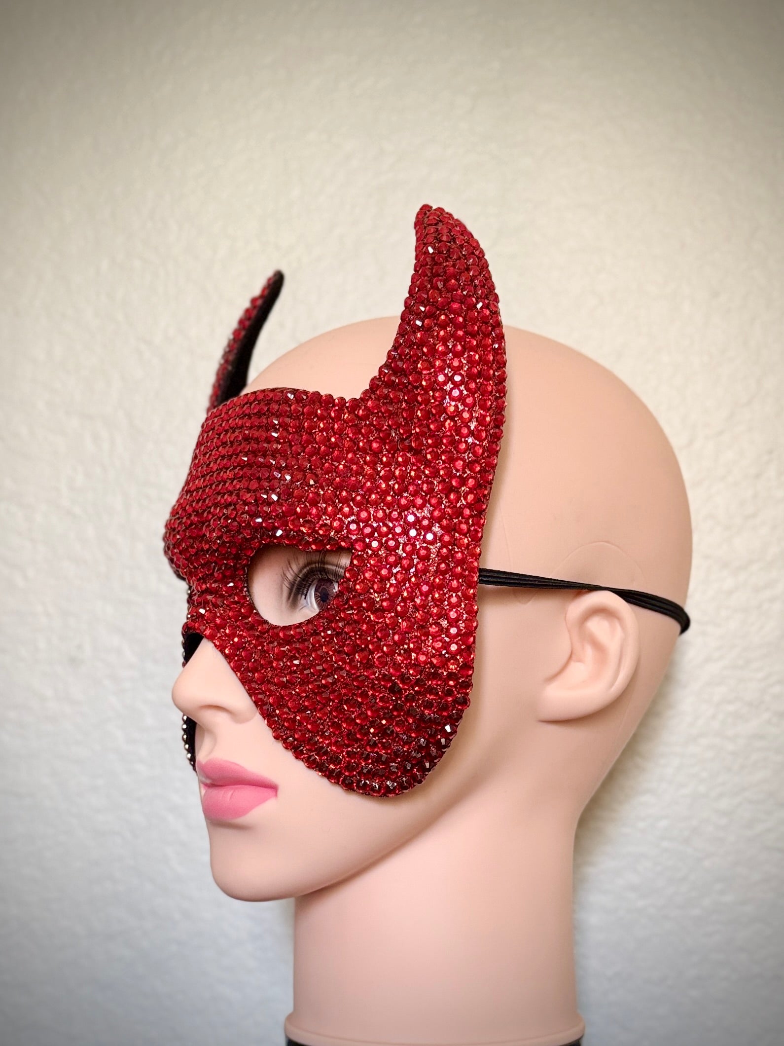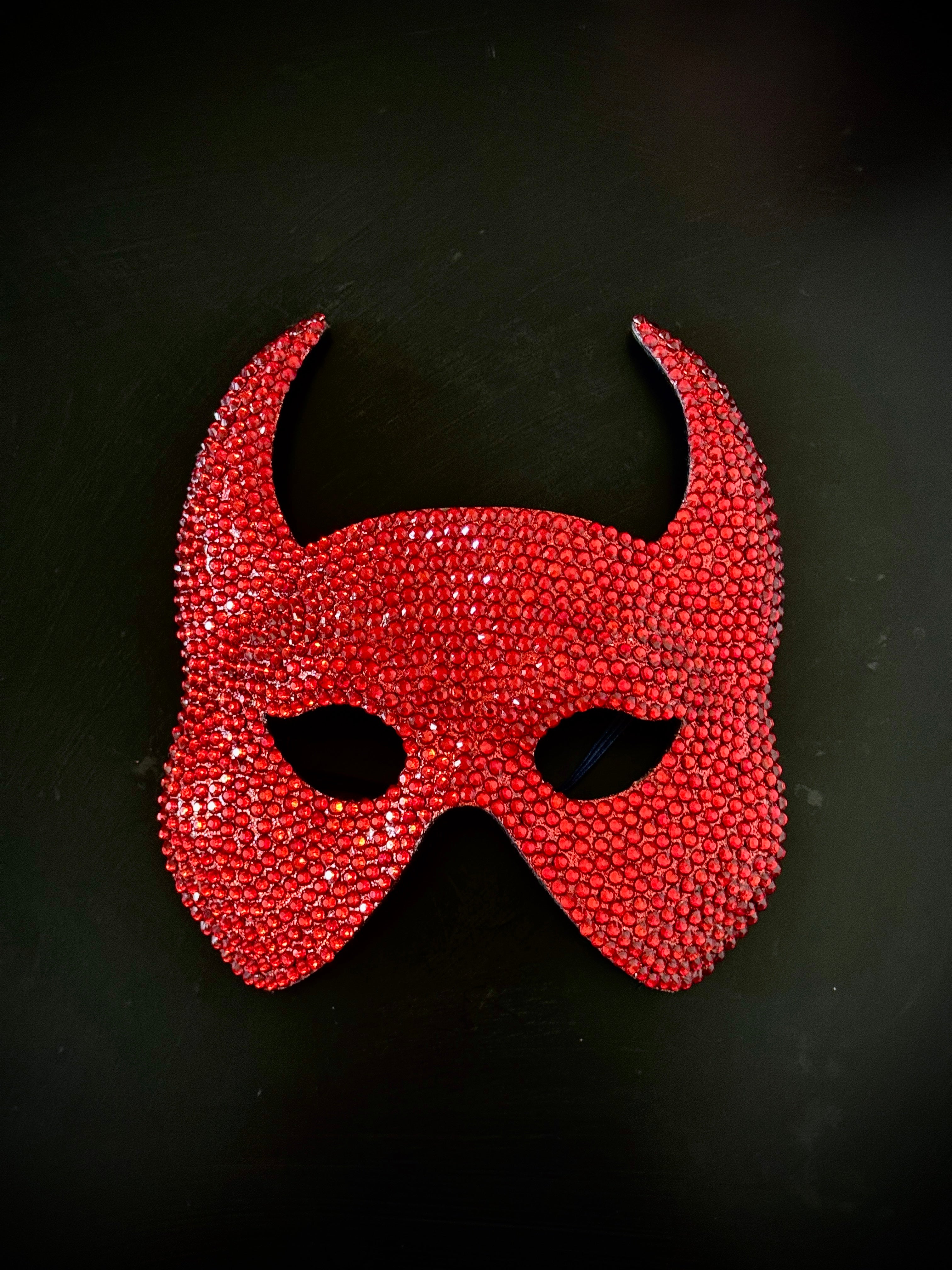 Red Rhinestone Devil Horn Masquerade Mask