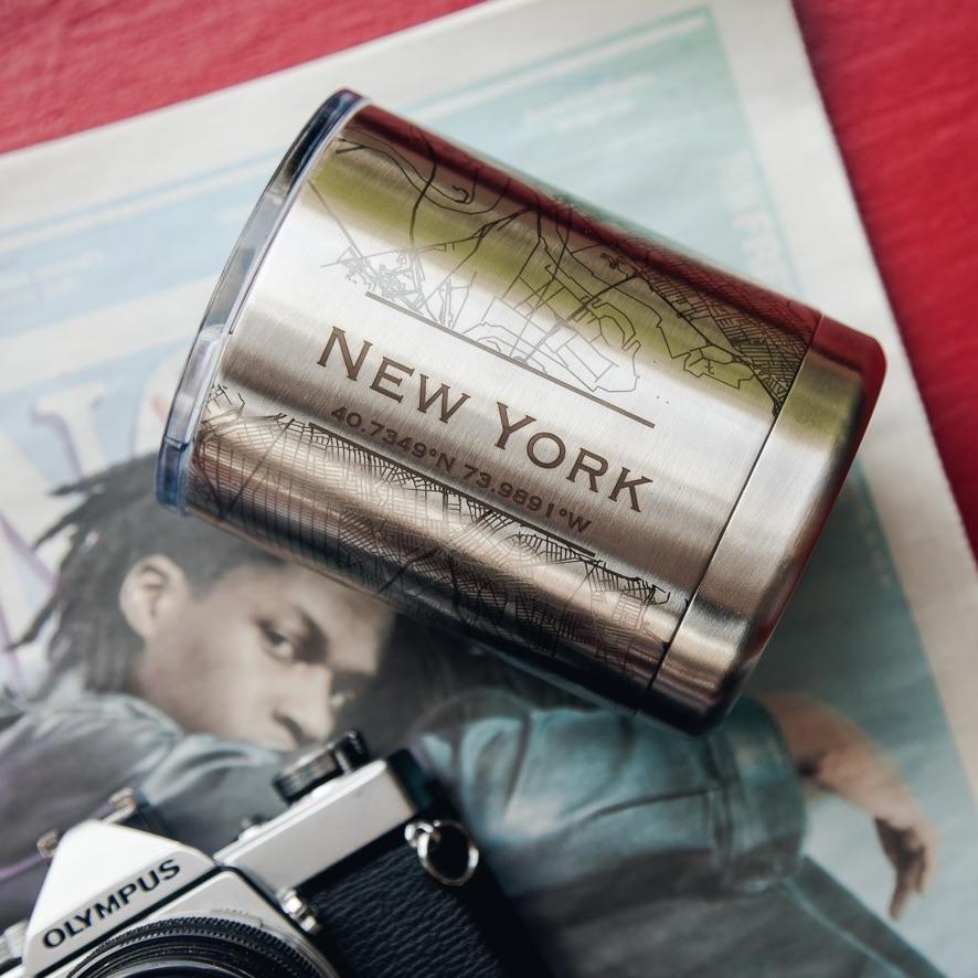 Custom engraved map of Rocky Mountain National Park, Colorado and coordinates on 10oz double walled insulated stainless steel cup. Map... Read more