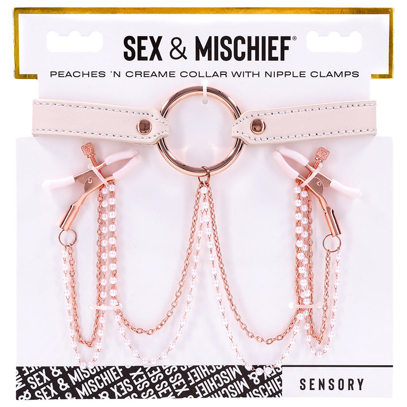 Spice up your playtime with the Peaches n CreaMe Collar with Nipple Clamps and experience extraordinary pleasure! This playful accessory blends luxury with a touch of naughtiness, featuring a delightful peach-colored collar adorned with rose gold hardware and tantalizing attached nipple clamps! The soft faux fur lining ensures comfort, while the adjustable collar guarantees a snug fit for all peach enthusiasts. Secure the rose gold clasp, let the nipple clamps do their flirty magic, and get ready to turn up the heat in your intimate moments. Whether you're a curious beginner or a seasoned adventurer, this playful accessory adds a dash of charm and a hint of sweetness to your escapades.