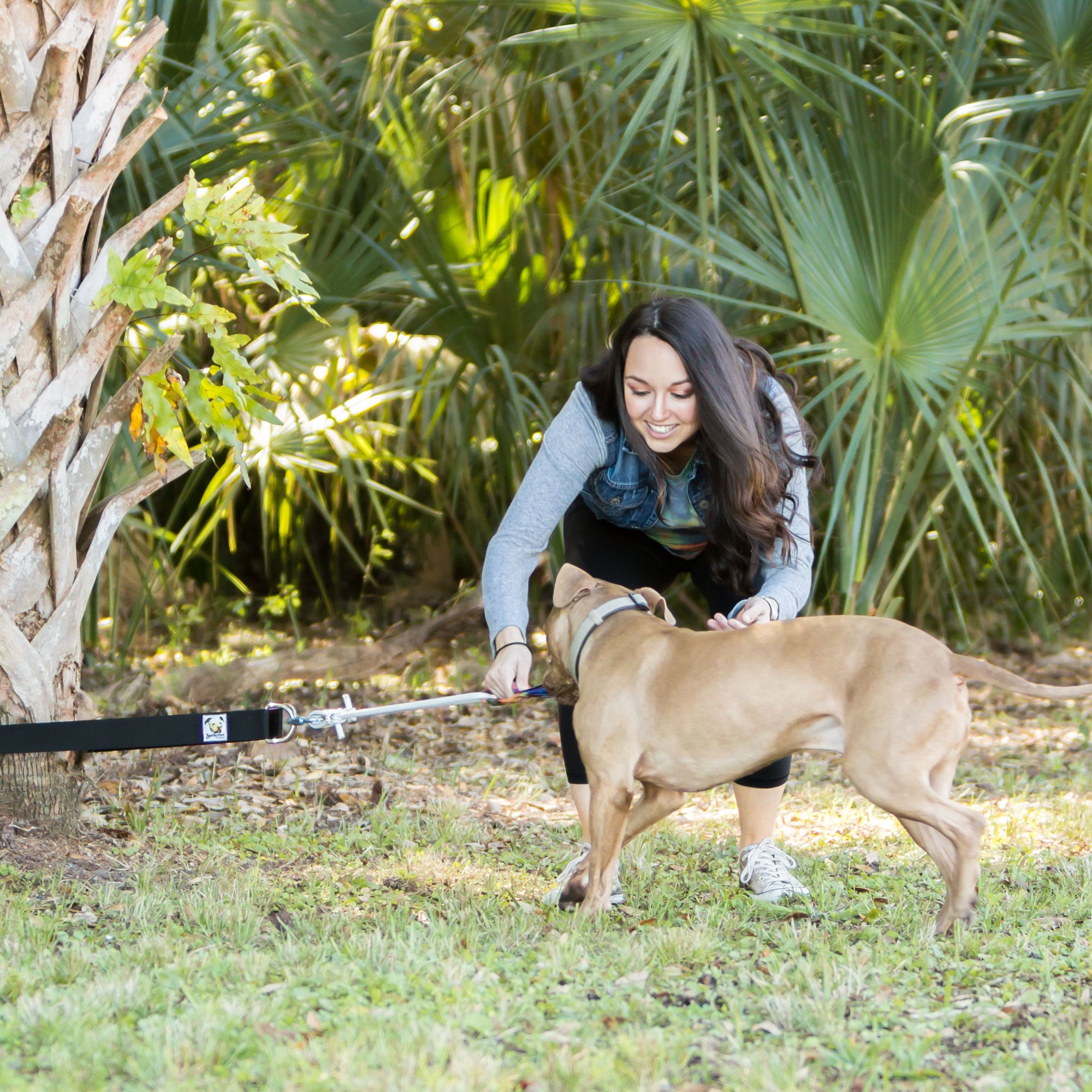 So I designed the Super Tug, a safer alternative to the spring pole. It uses a horizontal configuration instead of the vertical one seen with traditional spring pole designs. It also uses super strong, marine grade bungee cord instead of a metal spring. The connection points are designed so that in case of failure, nothing comes flying back towards your dog.