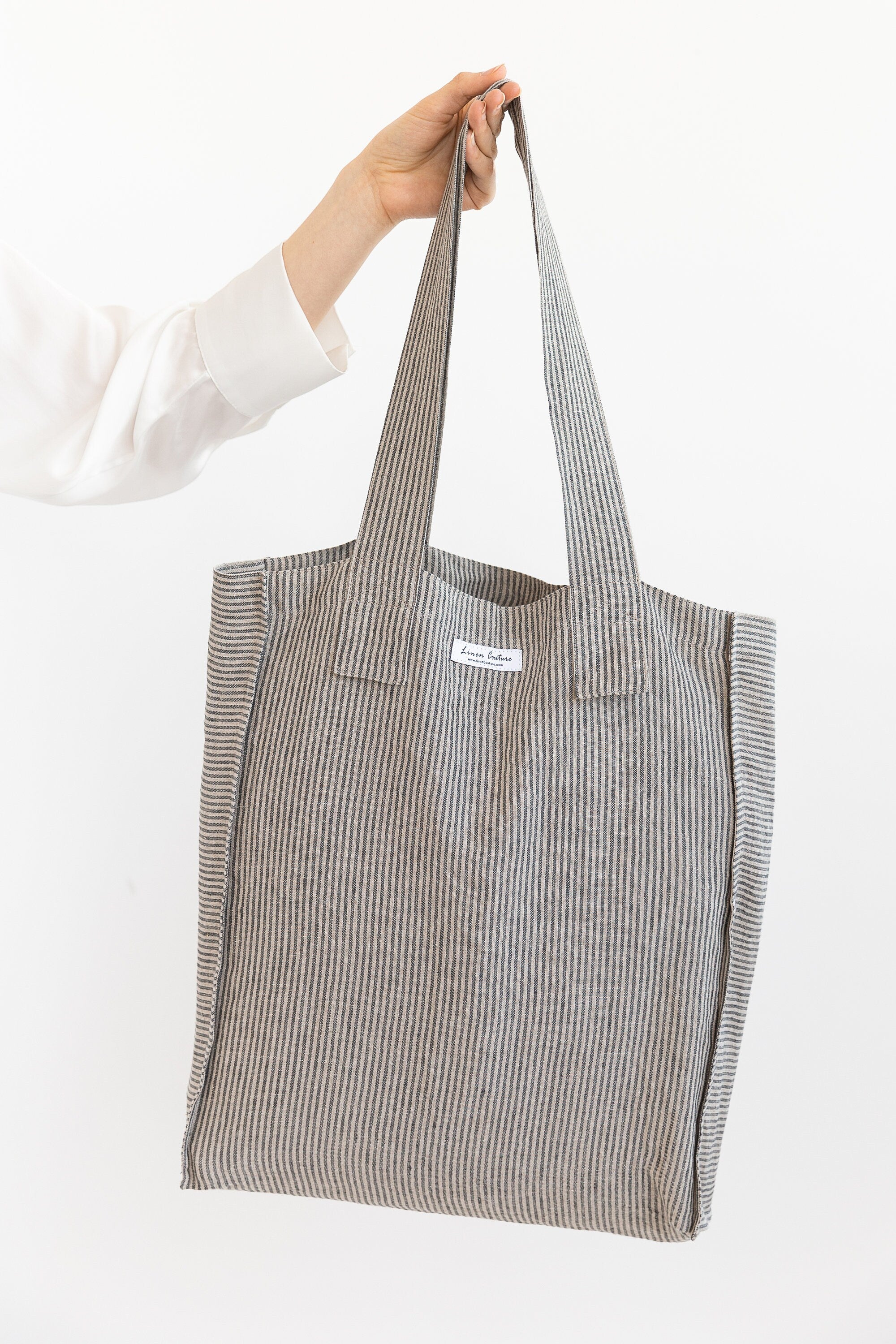 Our new large tote is practical, comfortable, and natural, handmade from 100% stonewashed linen. It can be used for multiple purposes: reusable grocery bag, beach bag, or simply casual everyday bag. It can be worn across the shoulder for a hands-free, practical approach. They are stone-washed and preshrunk, which made these bags soft to touch and easy to care for.