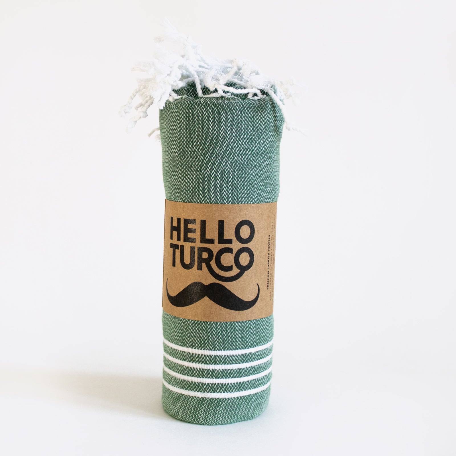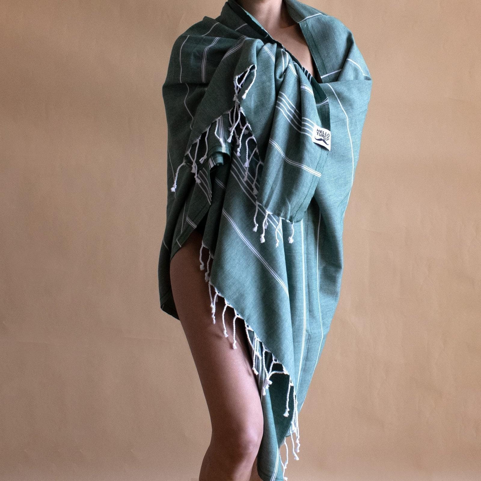 Khaki green, tight-knitted, light-weight TURCO towel. Perfect for your beach, sauna and gym trips š