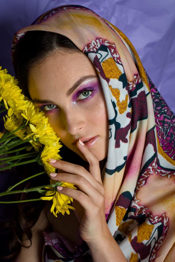 Sway Modal Scarf printed With Anet Abnous's Original Painting "Sway" which was exhibited in NYC and North Korea. It has a imprint of Figurative Abstract painting in beautiful hues of Purple and Yellow. It is part of our Sensuous Desire collection.