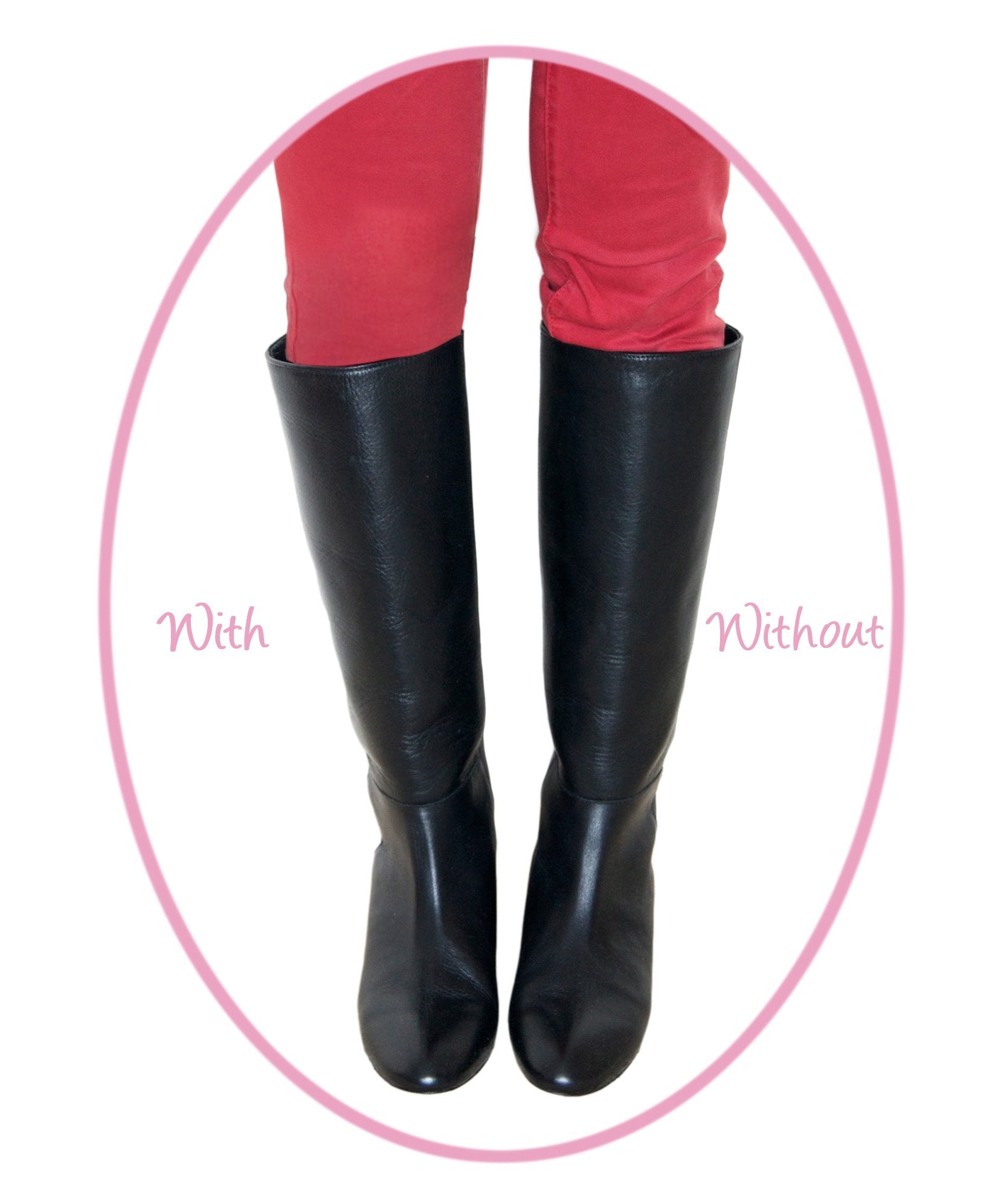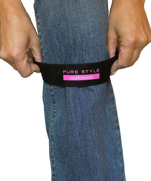 Keep jeans and pants neatly tucked into boots for a fashionable, sleek look. Simply wrap Tucked In around your leg to prevent pants from riding up in boots and wrinkling around legs. The adjustable strap holds pants in place for a smooth, comfortable, and sophisticated look .