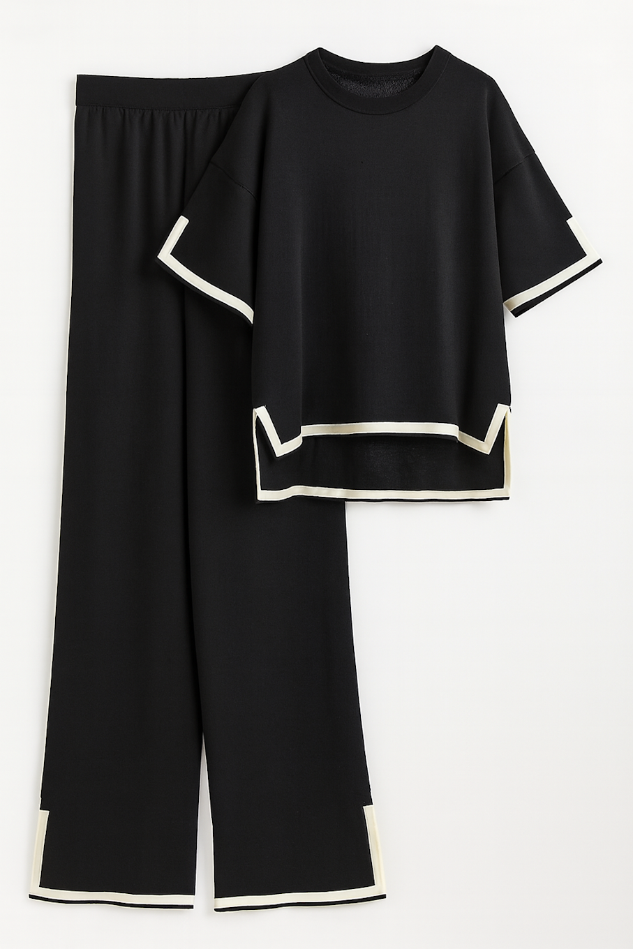 Two-Piece Relaxed Fit Co-Ord Set for Women-Black (Size-2XL) | D40
