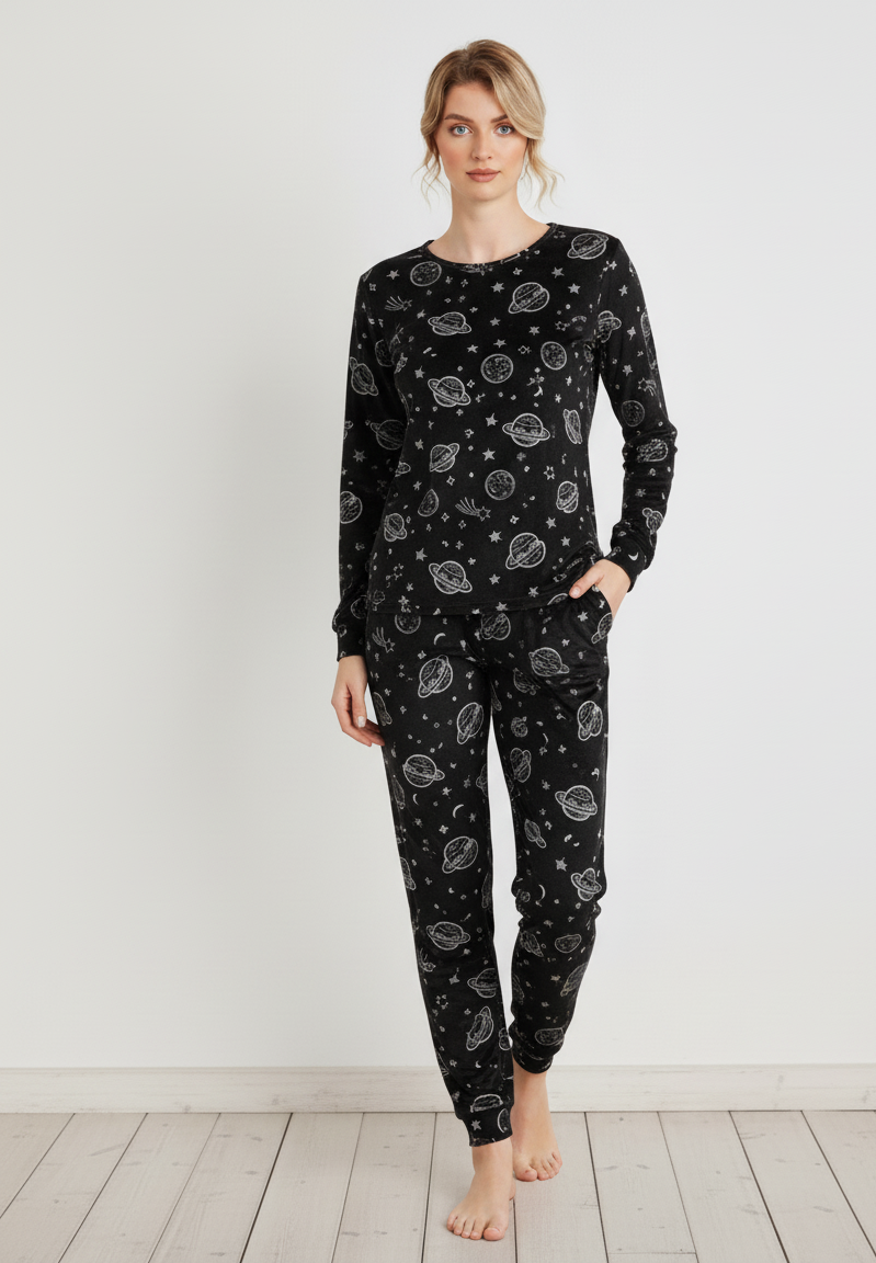 Two-Piece Relaxed Fit Co-Ord Set for Women-Black (Size-S) | D07