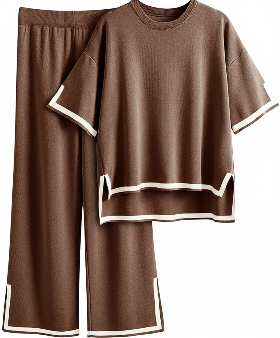 Two-Piece Relaxed Fit Co-Ord Set for Women-Brown (Size-3XL) | D09