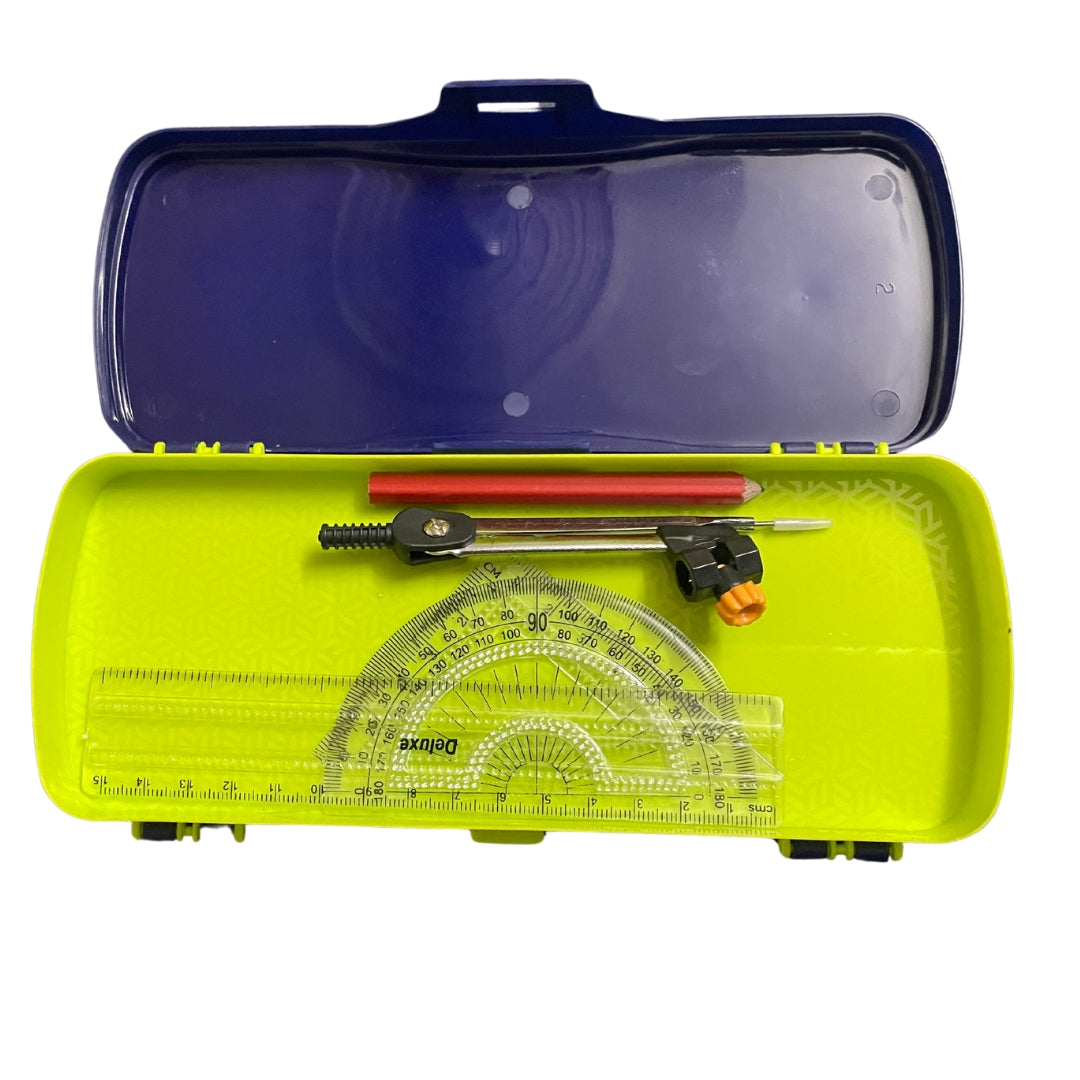Maxo Size: These are large-capacity boxes with dual compartment layout to neatly store pencils, pens, rulers (up to 15 cm), erasers, sharpeners, and even geometry tools.