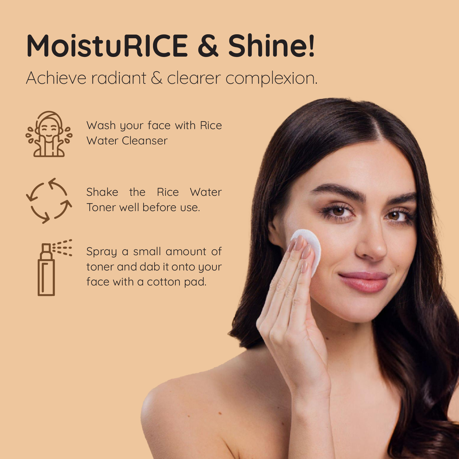 Rice Water Toner (100ml): Enriched with Fermented Rice Water, Niacinamide, Korean Ginseng & Hyaluronic Acid, this lightweight toner deeply hydrates, refines pores, and improves texture for a smooth, radiant complexion. Its antioxidant-rich formula calms and protects, making it ideal for all skin types.