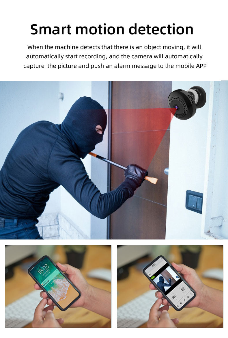 >>Intelligent Motion Detection Alarm:When going out, you can receive warning messages in your phone when motion is detected and it save video on app and sd card. The device features 6 IR lights (without lum), The night vision function will turn on automatically once the environment getting dim.