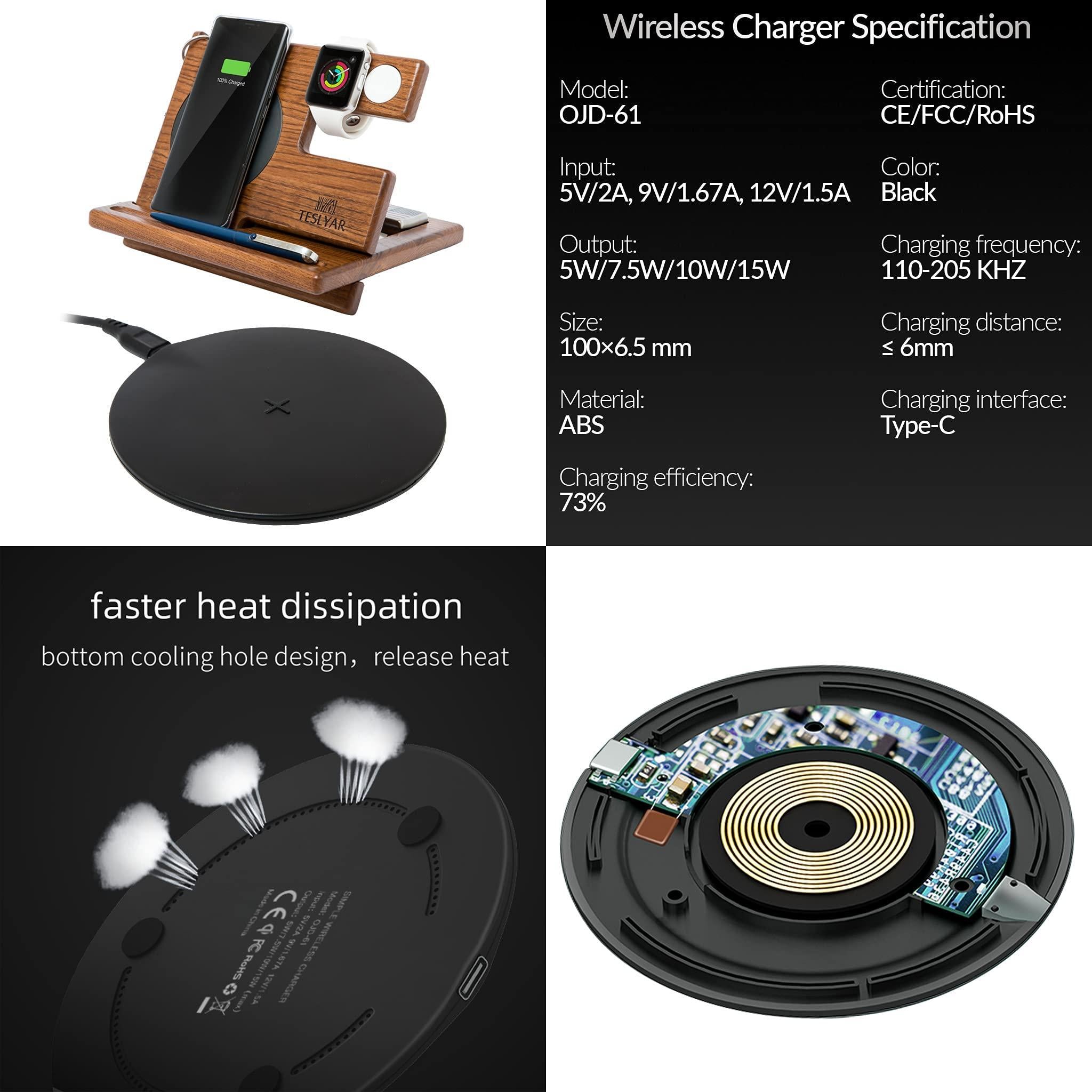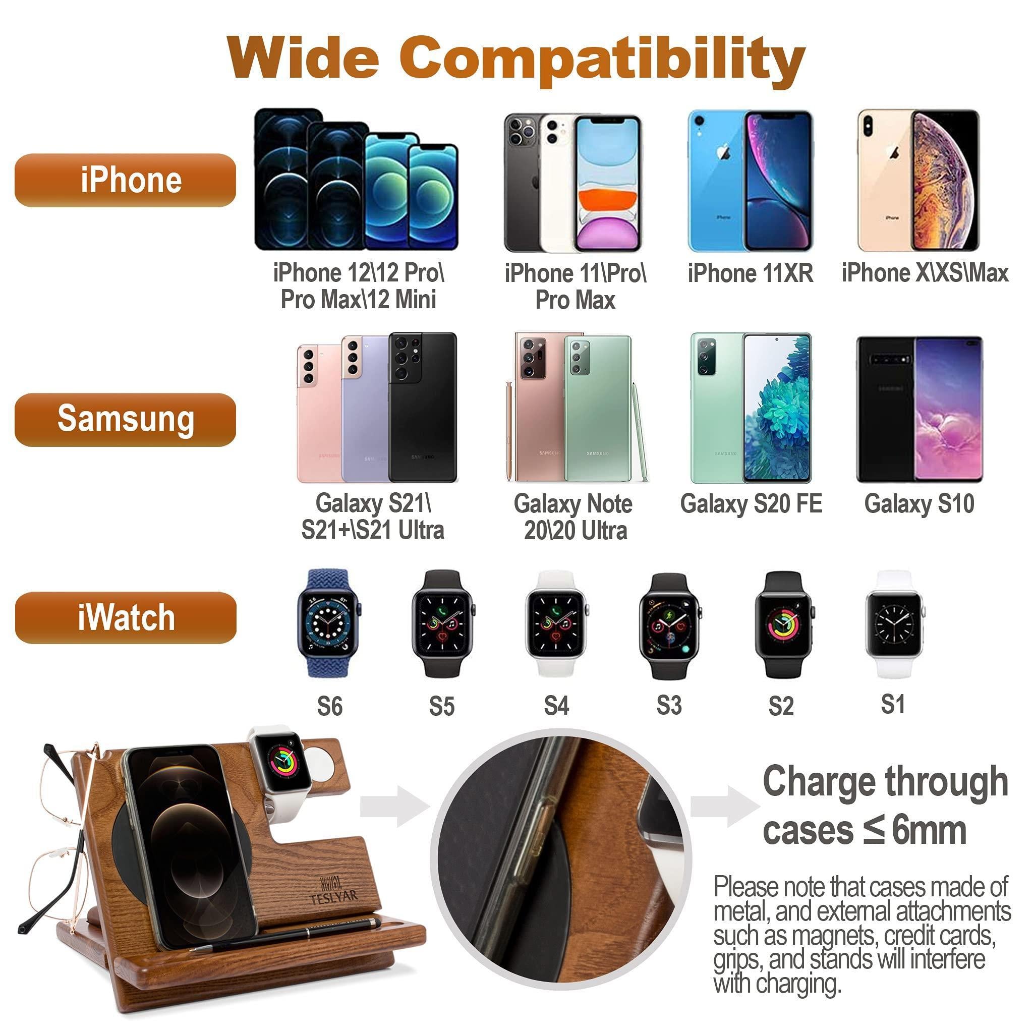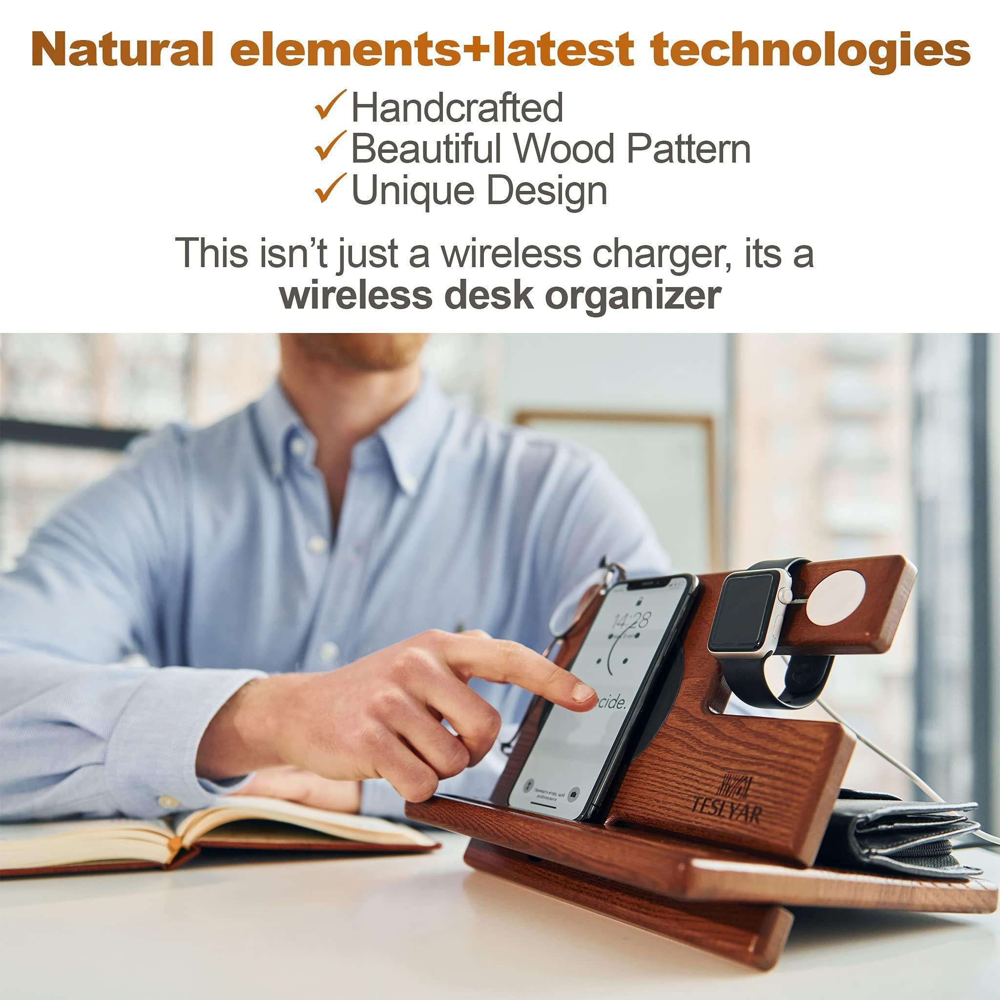 NEW RELEASE! WIRELESS CHARGER INCLUDED! 2 IN 1 WIRELESS CHARGER STAND. This Wooden Docking Stand with Wireless Charger provides you fast and safe charging of your phone and place to store all your daily-used things. Convenient to charge for all QI devices!