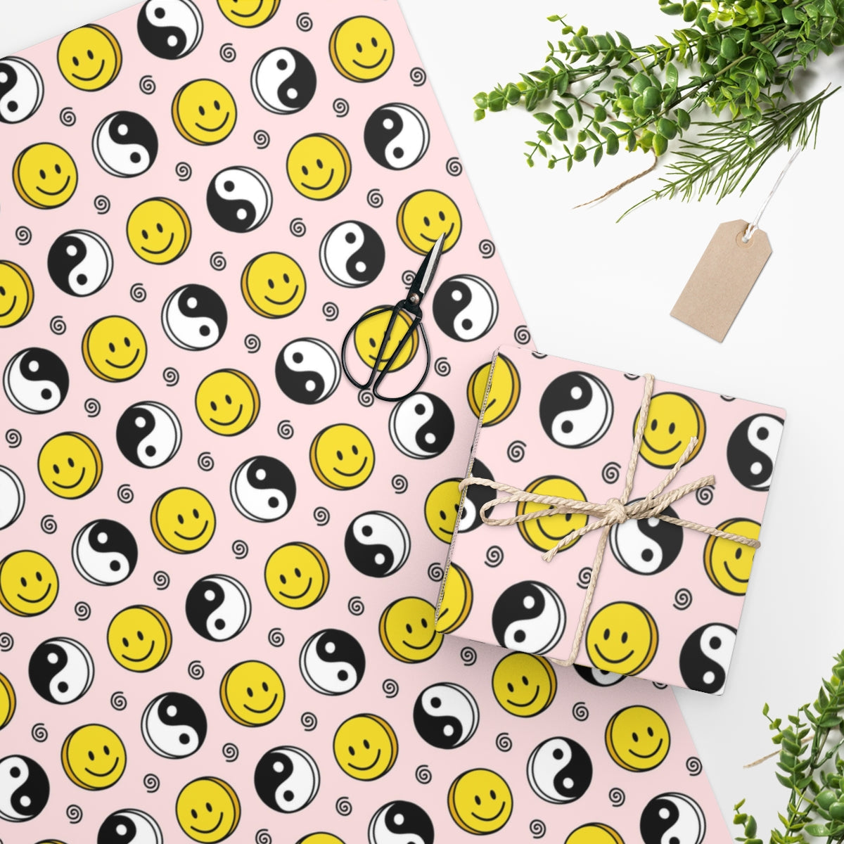 Our Ugly Alligator fun patterned with funny 70s, 90s smiley cute face, Yin Yang pattern. Positive smile face, Yin Yang, Ying, high, trip , techno, 70s smiley pattern is sure to make the night of any party, birthday party, or any kind of kinda of fun event. This wrapping paper features edge-to-edge printing on a premium gloss paper (90 GSM) for a smooth and clean look.
